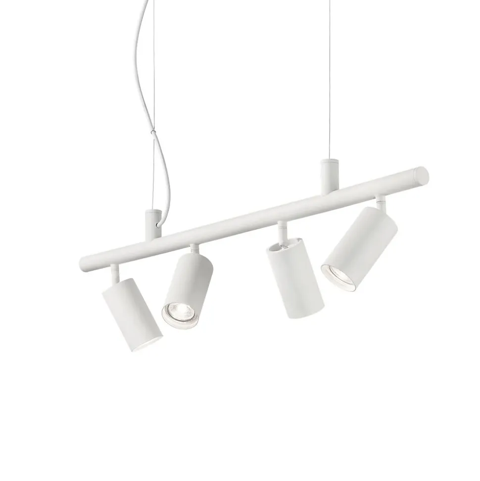 Ideal Lux DYNAMITE – Lampe à Suspension Intérieur 4 Lumières Spotlight Blanc, GU10Finition: blanc | Matériel: Métal | Indice de protection IP: IP20 | Hauteur min. (Cm): 16,5 | Hauteur max (cm): 225 | Longueur (cm): 76 | Projection (cm): 5,5 | Nbre de lumières: 4 | Type de lampe: GU10 | Poids (kg): 2,31 | Classe: Classe 2 | Ampoule incluse: Oui