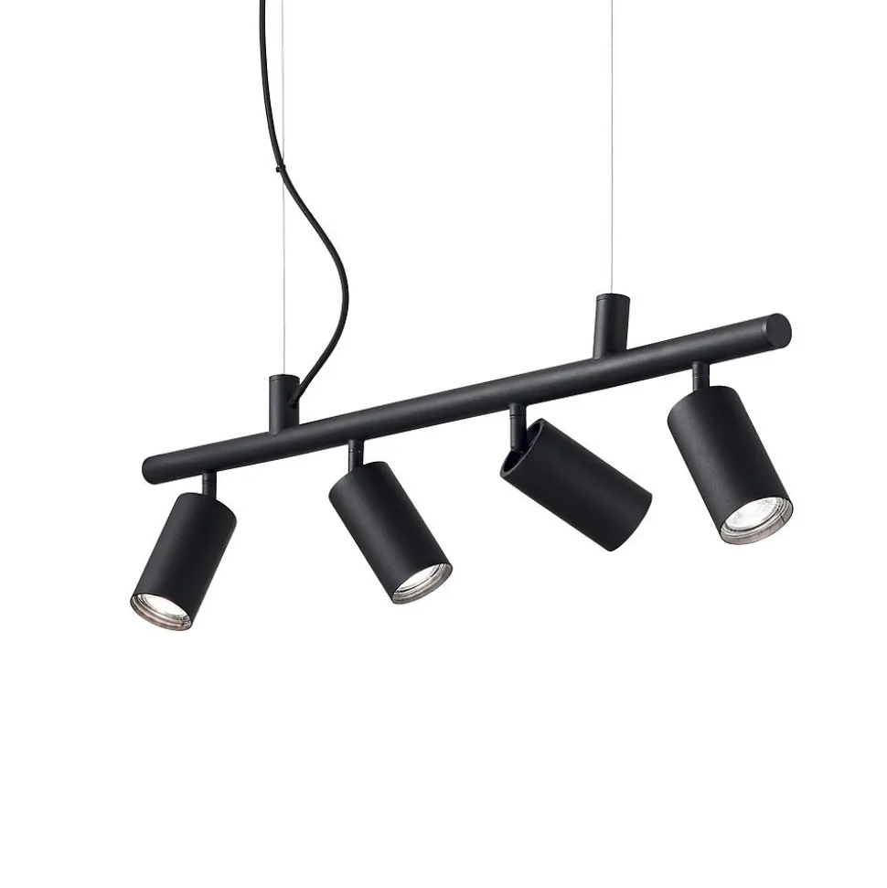 Ideal Lux DYNAMITE – Lampe à Suspension Intérieur 4 Lumières Spotlight Noir, GU10Finition: noir | Matériel: Métal | Indice de protection IP: IP20 | Hauteur min. (Cm): 16,5 | Hauteur max (cm): 225 | Longueur (cm): 76 | Projection (cm): 5,5 | Nbre de lumières: 4 | Type de lampe: GU10 | Poids (kg): 2,31 | Classe: Classe 2 | Ampoule incluse: Oui