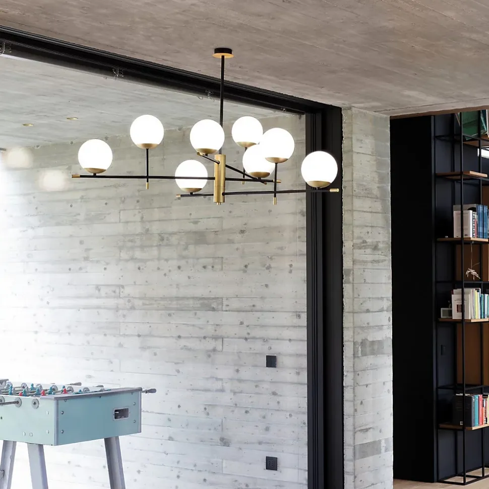 Ideal Lux GOURMET Plafonnier semi-encastré à 9 lumières globe multi-bras noirFini : LaitonMatériau : métal, verreClassement IP : IP20Hauteur : 93 cmDiamètre : 131,5 cmType de lampe : E14Nombre de lampes : 9Dimmable : Oui – Ampoule dimmable requisePoids : 5,4 kgPuissance (max): 9x 40W