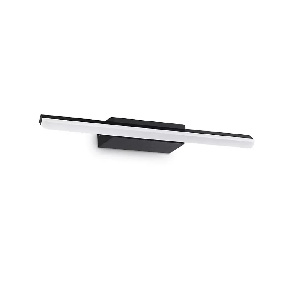 Ideal Lux RIFLESSO Salle de bains LED intégrée sur miroir lumière noire 1100Lm 3000K IP44Finition : NoirMatériel: MétalIndice IP : IP44Hauteur : 4,5 cmLongueur : 42 cmProjection : 9 cmType de lampe : LED intégréeNombre de lampes : 1Ampoule incluse : OuiIntensité variable : non variableKelvins : 3 000 à 4 000 KLumens : 1100 lmPoids : 0,6 kgPuissance (maximale) : 11 W