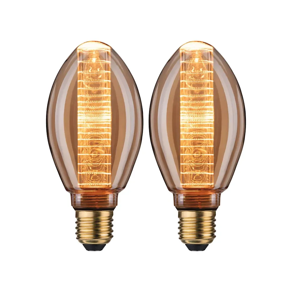 Le kit d’ampoules comprend 2 ampoules Inner Glow dorées. Les ampoules cylindriques diffusent la lumière dans toutes les directions. Les ampoules LED confèrent une parfaite ambiance Vintage et, en version rétro, sont de vraies accroche-regard. Elles ont une température de couleur dorée très agréable.