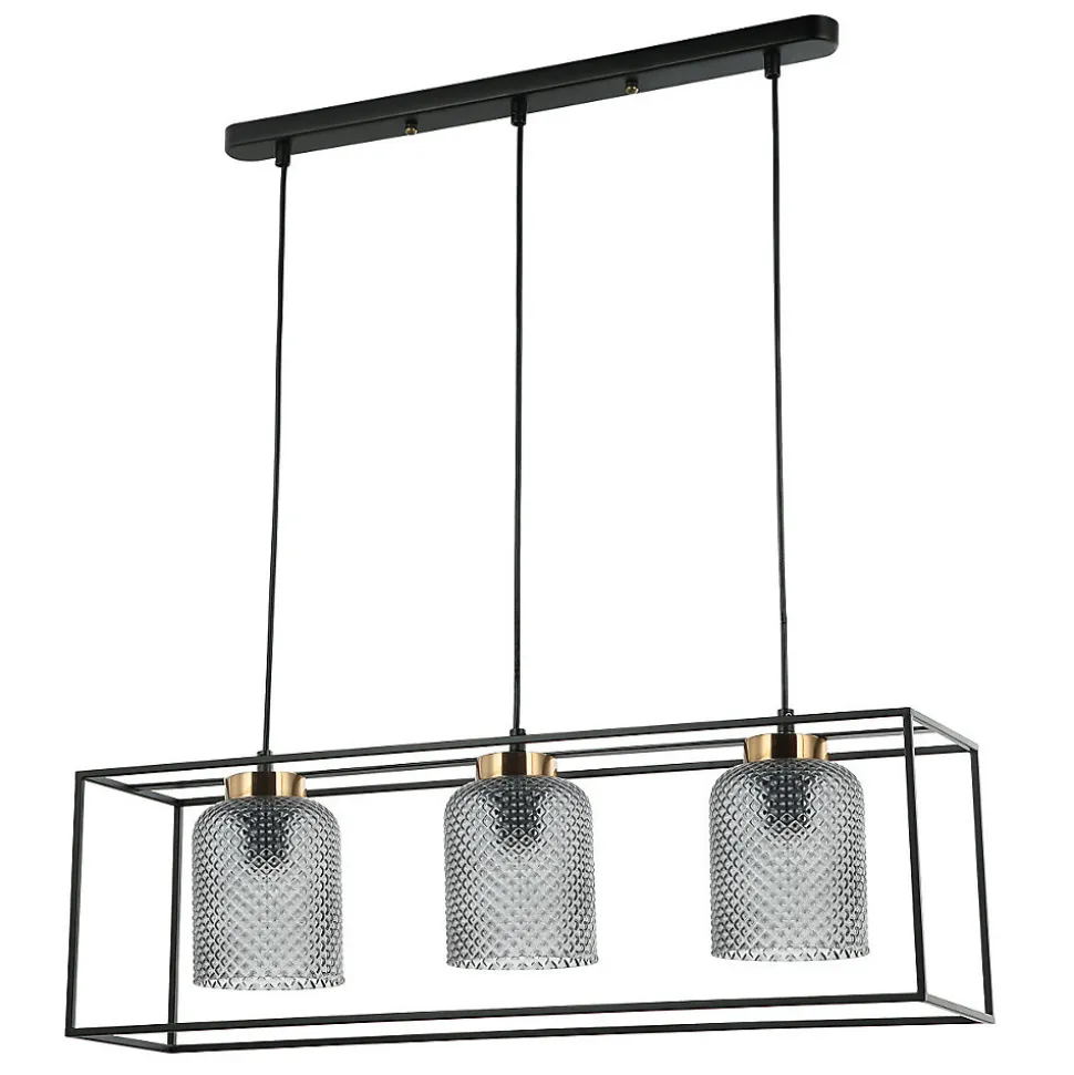 Italux Sinella Plafonnier suspendu industriel rétro à 3 lumières E27Finition : NoirMatériau : acier, verreClassement IP : IP20Hauteur : 16 cmHauteur maximale : 96 cmLongueur : 20 cmLargeur : 68,5 cmType de lampe : E27Nombre de lampes : 3Ampoule incluse : non inclusePuissance (max): 40W