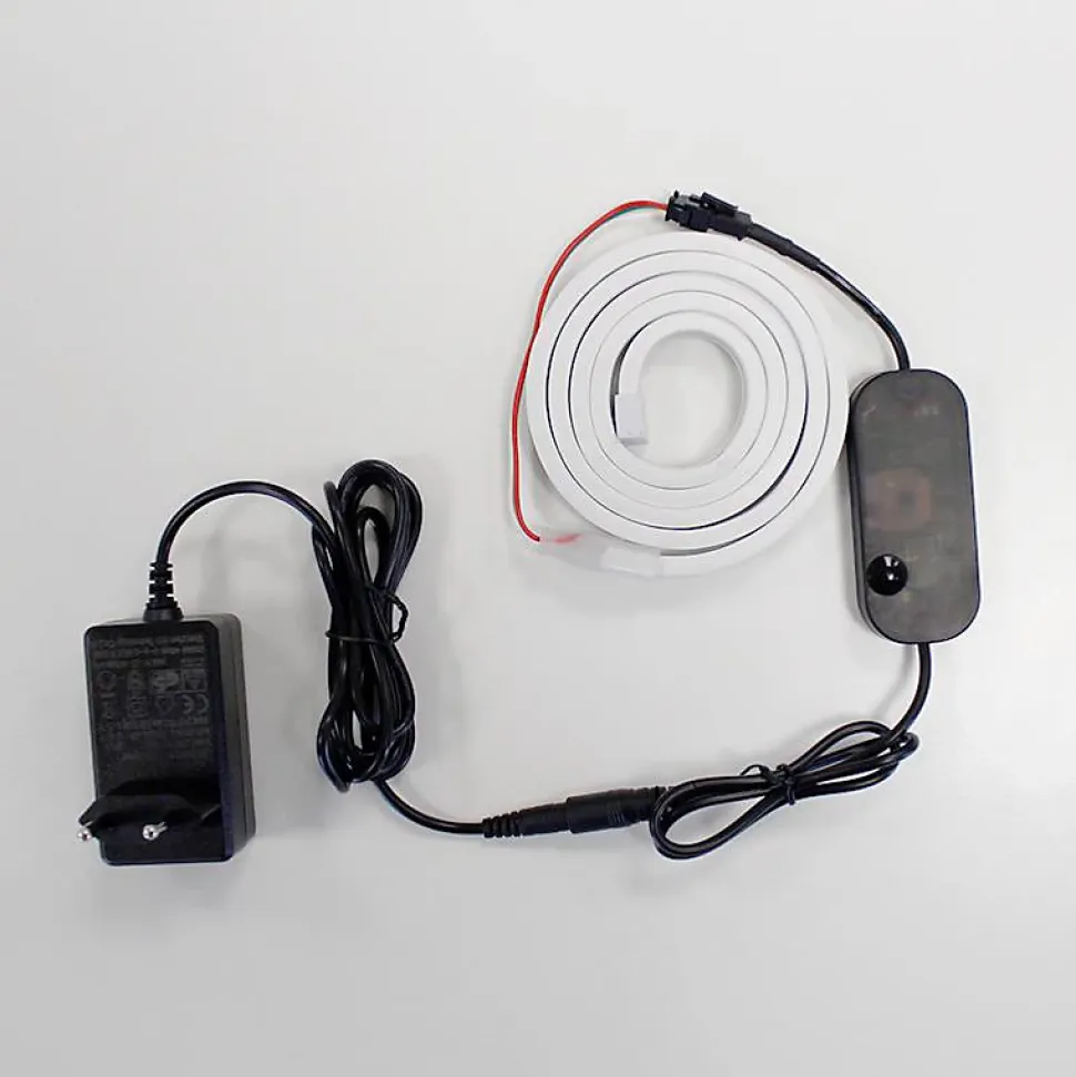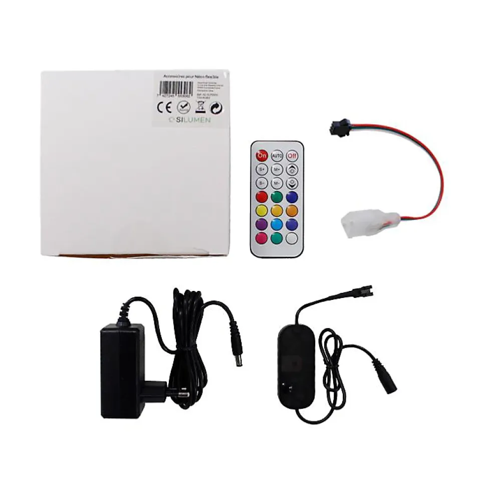 - [Information] Ce pack d’accessoires contient: Un transformateur 24W pour prise murale 220V, un contrôleur RGB WIFI, une télécommande (piles non incluses) et un connecteur pour néon pour réaliser la connexion électrique.
