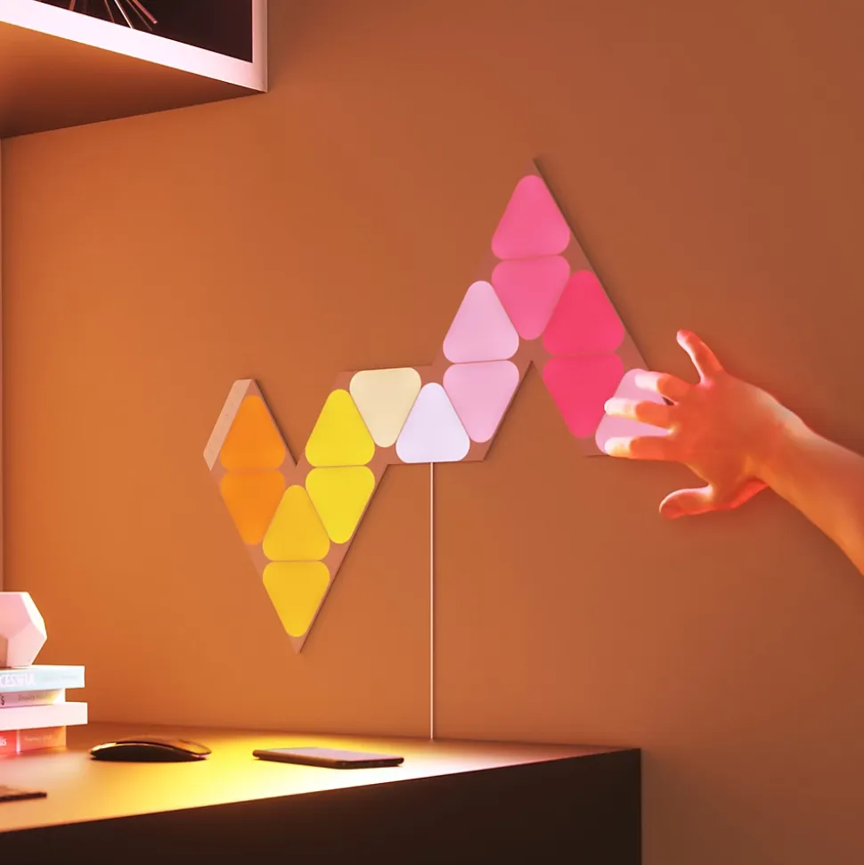 - Réagissent au toucher. Les Panneaux Nanoleaf Shapes vous permettent de créer des expériences tactiles immersives, les panneaux réagissent à votre toucher et vous permettent de jouer à des jeux interactifs.