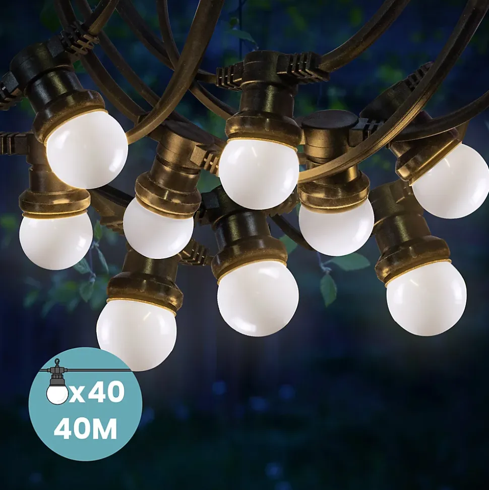 - ✨ UNE ATMOSPHÈRE UNIQUE : Créez des atmosphères de rêve lors de votre mariage, anniversaire, barbecue ou lors d’une soirée entre amis grâce à notre guirlande guinguette de 40M, composée de 40 bulbes colorés étanches !