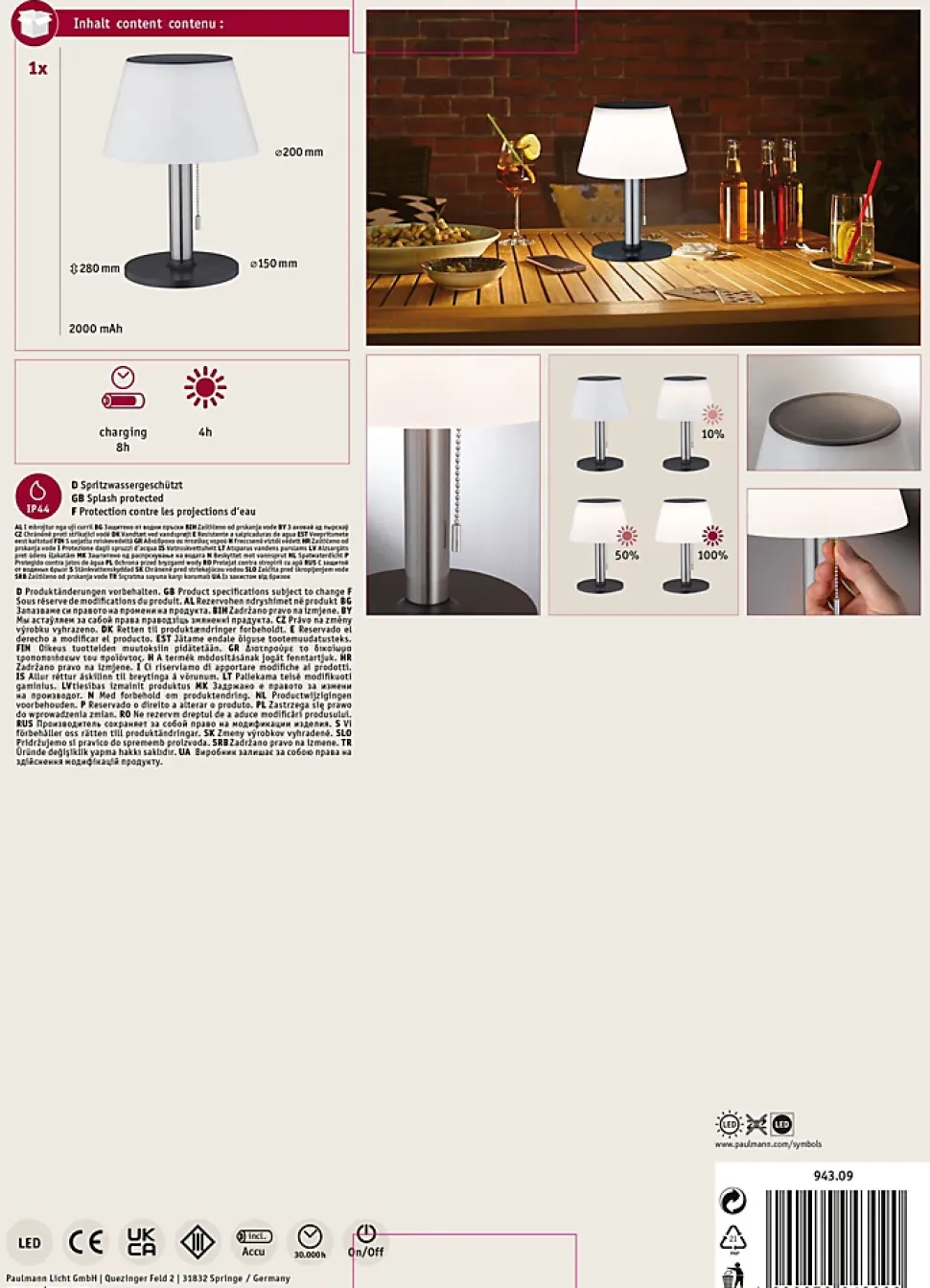 Température de couleur: 3000K – Blanc chaud|Intensité variable|Protection IP : IP44 – Protection contre les projections d’eau