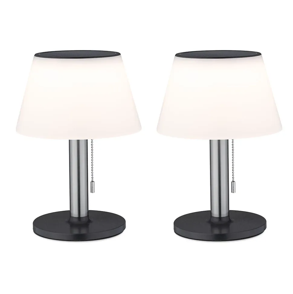 Composé de deux lampes à poser LED Solar Lillesol, le kit fournit un éclairage agréable au jardin ou sur la terrasse. Les batteries lithium-ion se rechargent pendant la journée à la lumière du soleil et ne requièrent donc une prise à proximité. Trois intensités de lumière peuvent être sélectionnées.