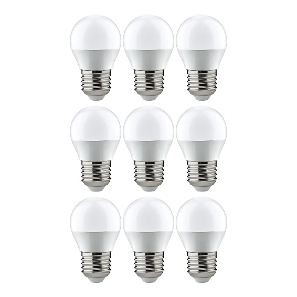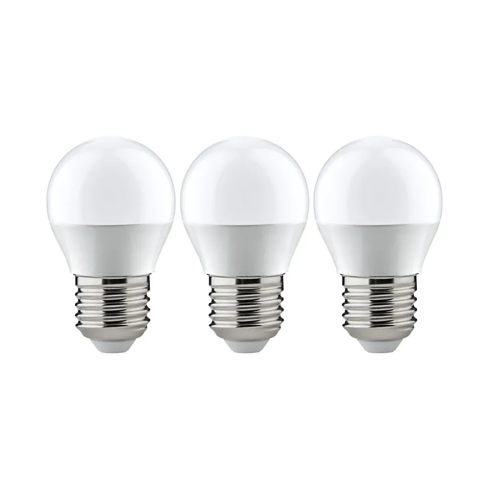 Le kit d’ampoules comprend 3 x 3 ampoules sphériques LED. Les lampes sphériques diffusent leur lumière blanc chaud dans toutes les directions. Grâce à leur forme compacte, les ampoules sphériques sont idéales pour les petits luminaires. Elles ont une température de couleur blanc chaud agréable et sont compatibles avec les douilles E27 conventionnelles.