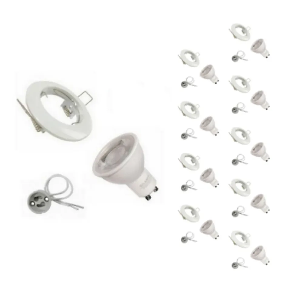 - Optez pour ce joli Kit Spot LED GU10 encastrable Rond Blanc avec une ampoule 8W (Pack de 10) afin d’illuminer votre intérieur efficacement.