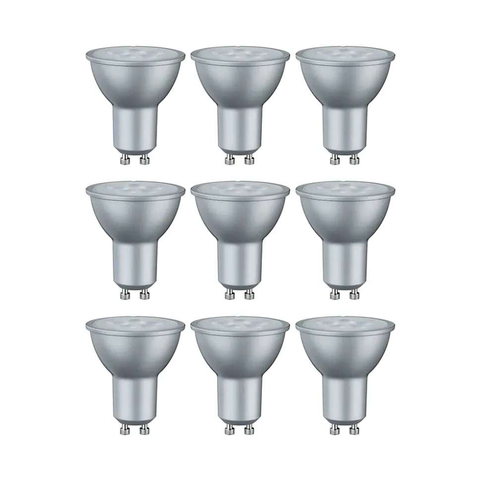 Les lampes à réflecteur assurent une lumière dirigée dans les projecteurs, les spots et les downlights. Le faisceau lumineux met en scène les objets de décoration et d’aménagement de manière ciblée. Dans ce kit attractif, le kit multiple de 3 sources lumineuses à réflecteur LED est inclus 3 fois. Il est ainsi possible de passer à la technique LED efficace à un prix avantageux ou de constituer des stocks. Les sources lumineuses créent une température de couleur blanc chaud agréable et s’adaptent à toutes les douilles GU10 disponibles dans le commerce. Les lampes LED Paulmann portant le label Eye friendly offrent une lumière confortable qui ménage les yeux. Que ce soit pour travailler, lire ou se détendre, les lampes contribuent au meilleur confort visuel.