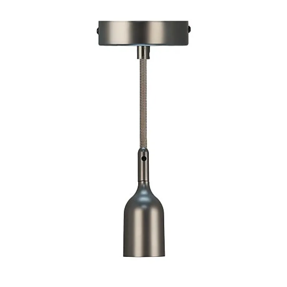 Kit Suspension E27 Luxurious Bell – Câble Textile Gris, Rosace & Cache Douille « Gun Métal » pour Cafés, Restaurants, SalonsDécouvrez le kit suspension « gun métal » E27 de la gamme Luxurious Bell, parfait pour créer des luminaires modernes et élégants. Ce kit s’intègre harmonieusement dans divers environnements tels que des cafés, des restaurants, des bars, ainsi que dans des espaces privés comme des salons et des salles à manger, apportant une touche de charme à chaque espace.Caractéristiques techniques :Rosace ronde à fixer au plafond, offrant une base stable pour votre luminaire.Câble en textile gris de 1,50 m, permettant un ajustement facile selon votre installation.Cache douille couleur « gun métal » au design élégant qui s’harmonise avec diverses ambiances décoratives.Compatible avec des ampoules LED déco et des ampoules vintage (toutes proposées par Lumière et Déco) pour personnaliser votre éclairage.Culot de type E27, standardisé pour une large compatibilité.Tension de fonctionnement de 220-240V, garantissant une utilisation sûre et efficace.Diamètre de la rosace de plafond : 10 cmAvantages décoratifs :Installation simple et rapide, idéale pour ceux qui souhaitent moderniser leur espace sans tracas.Ajoute une touche de style à votre intérieur, que ce soit dans un cadre résidentiel ou commercial.Parfait pour illuminer les tables, les coins lecture, et créer une atmosphère chaleureuse.Apprécié par les architectes