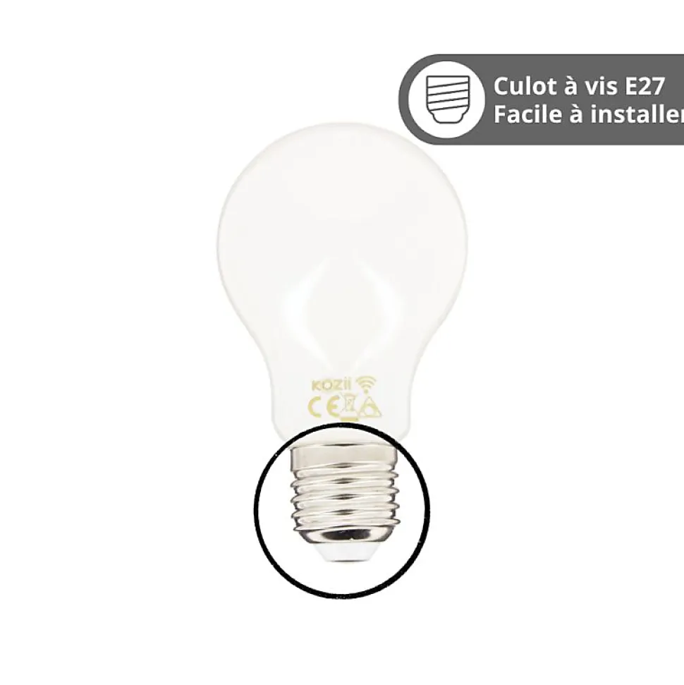 KOZii – Ampoule LED connectée KOZii, éclairage multi-blancs, Filament, E27 A60 Opaque 7W cons., – KRFE806GOCCT