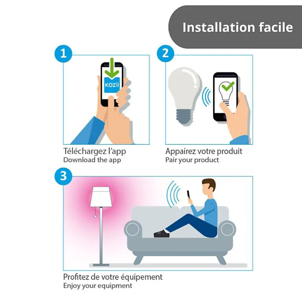 KOZii – Pack de 3 Spots LED connectés, culot GU10, variation de couleur – KPACK3G50SRVBCCT