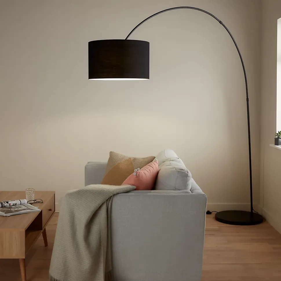 Lampadaire arqué Alacrane E27 L.190xH.220cm noir mat Goodhome