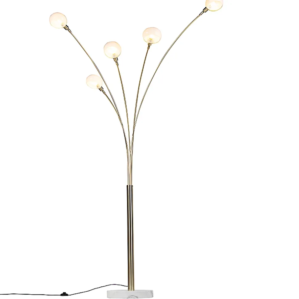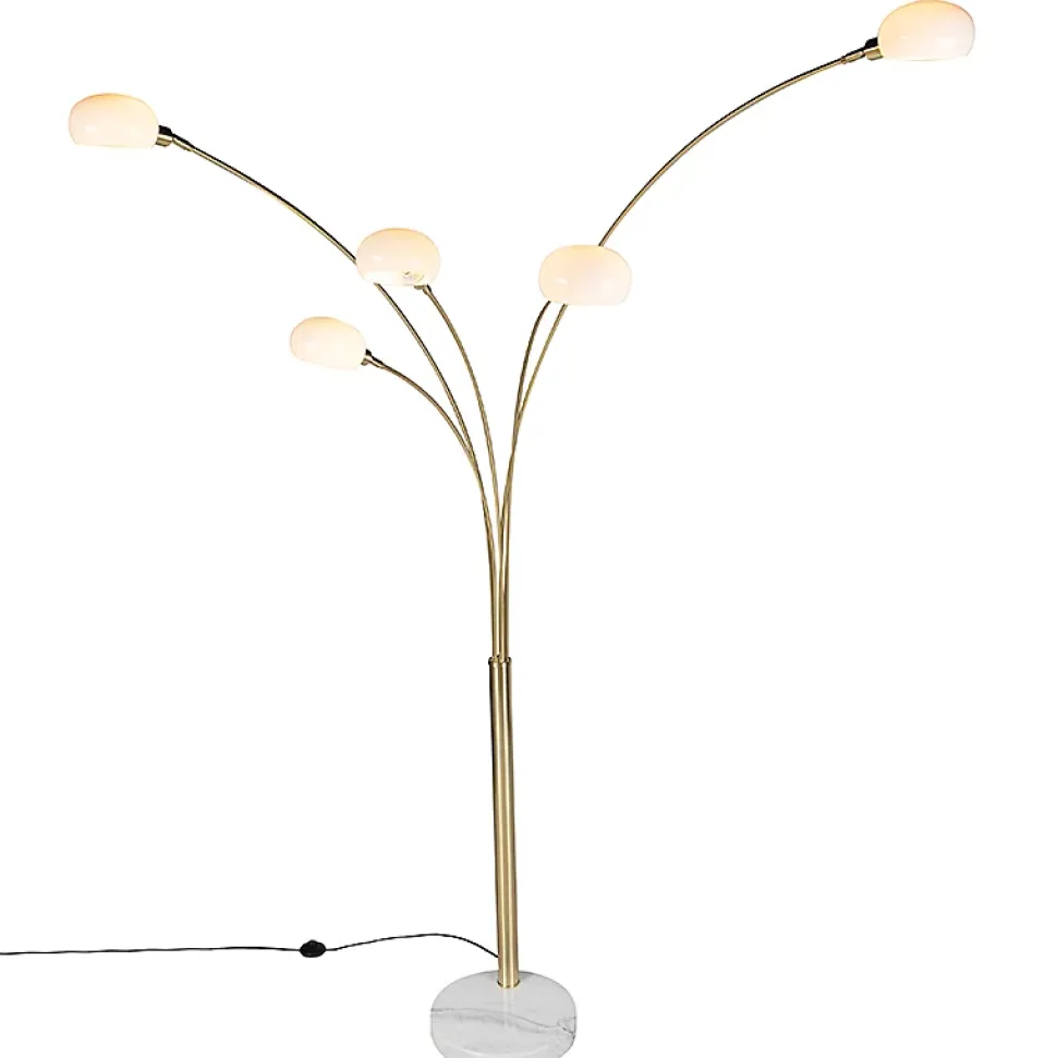 Parlez d’un lampadaire élégant, que pensez-vous de ce Sixties Marmo ? Ce luminaire saisissant peut accueillir pas moins de 5 ampoules. Amusant, n’est-ce pas ?! Ce modèle attire tous les regards, avec une hauteur de 215,5 cm, une longueur de 124 cm et une largeur de 14 cm. Sa base en marbre lourd a un diamètre de 35 cm. Le cordon mesure 260 cm de long et est équipé d’un interrupteur marche/arrêt. Ce lampadaire Sixties Marmo vintage en or/laiton saisissant possède 5 petits culots E14 et est fourni sans ampoules. N’oubliez pas de les commander séparément (40W maximum chacune). Les 5 points lumineux sont dotés d’abat-jour blancs. Le luminaire est compatible avec un variateur externe (non inclus). Choisissez des ampoules à intensité variable, car ce lampadaire possède de nombreux points lumineux, ce qui vous permettra de créer l’ambiance idéale. Ce lampadaire super cool trouvera sa place dans un salon, une chambre à coucher, mais aussi dans un couloir ou un bureau. Il donne à votre intérieur un look chic d’hôtel.