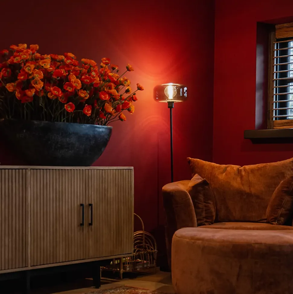 Le lampadaire Bizle est un véritable accroche-regard dans tout intérieur Art déco ! Il est gris avec des touches de noir, et est fabriqué en verre fumé et en acier. Il a un diamètre de 28 cm et une hauteur de 146 cm. Il est doté d’un culot E27. N’oubliez pas de commander l’ampoule séparément. Ce lampadaire est livré avec un cordon et une prise. Le cordon mesure 300 cm de long. Le Bizle est dimmable, vous pouvez donc facilement ajuster l’ambiance. Veuillez noter que ce lampadaire n’est pas livré avec un variateur d’intensité. Vous trouverez certainement une place pour ce Bizle !