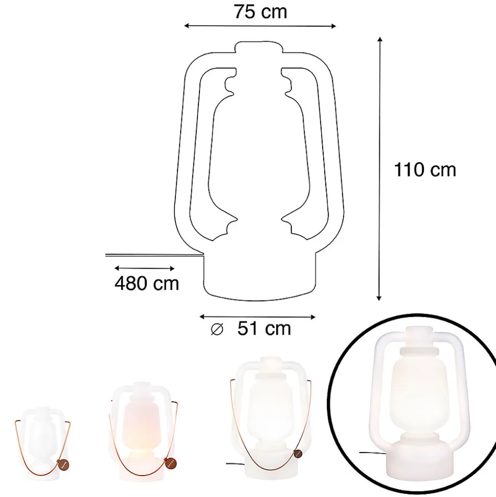 Notre célèbre lampe-tempête a désormais un grand frère ! Multifonctionnelle et respectueuse de l’environnement. La designer Femke Creemers de Caravanity a repris la forme emblématique de la lampe-tempête et l’a transformée en une lampe vraiment à l’épreuve des tempêtes (indice de protection IP44). C’est une lampe d’extérieur emblématique qui peut servir d’élément décoratif dans votre jardin ou sous la terrasse. La lampe Storm mesure 110 cm de haut et 75 cm de large. Son socle a un diamètre de 50 cm. Elle est livrée avec un câble de 4,8 m de long, soit très long ! Complétez votre lampe Storm avec une ampoule qui s’adapte à un culot E27. À noter : la lampe Storm n’est pas équipée d’un variateur d’intensité. Bien sûr, vous pouvez toujours choisir d’acheter une ampoule à effet flamme pour une ambiance encore plus chaleureuse. Optez pour un élément décoratif unique pour votre jardin avec la lampe Storm Extra Large !