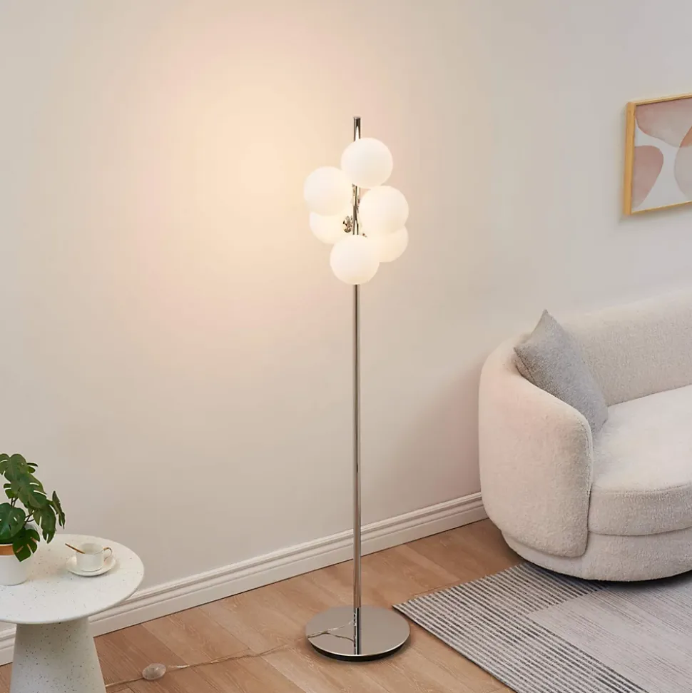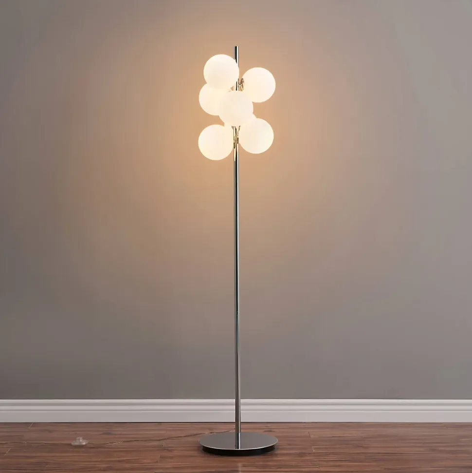 Le lampadaire chromé Melissa offre un design minimaliste et moderne, avec ses 7 sphères en verre blanc qui diffusent une lumière douce et uniforme. Compatible avec des ampoules G9 (non incluses), il est parfait pour éclairer subtilement les salons, bureaux ou coins lecture, tout en créant une ambiance chaleureuse et contemporaine. La base chromée lui confère solidité et durabilité, tandis que les sphères en verre apportent une note raffinée à votre décoration. Pratique et élégant, Melissa est facile à installer et constitue un ajout chic et fonctionnel à votre espace.) Assemblage simple requis (