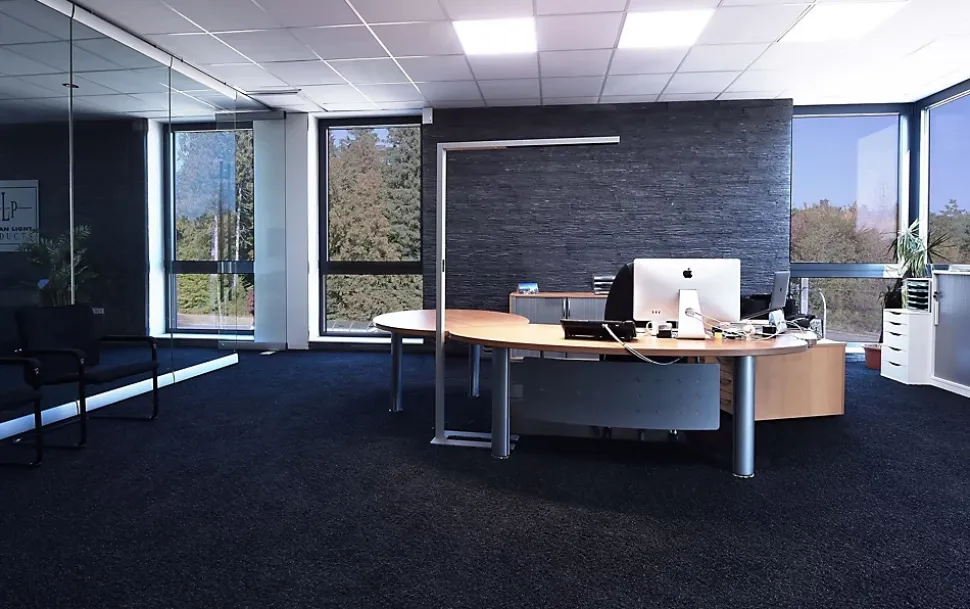 Les caractéristiques techniquesCe lampadaire de bureau est en aluminium de couleur grise. Il possède un flux lumineux très important de 9600 lumens qui s’ajuste automatiquement grâce au capteur de luminosité.Il diffuse une lumière blanc neutre (lumière du jour).Pour un meilleur confort visuel, le coefficient d’éblouissement est inférieur à 6.L’indice de rendu des couleurs est supérieur à 80.Pour un éclairage économique et respectueux de votre consommation d’énergie, ce luminaire est équipé d’un détecteur de présenceLa qualité des composants de ce luminaire permet un usage intensif.Les avantages esthétiquesL’esthétique sobre et minimaliste de cette lampe de bureau sur pied lui pemet de s’intégrer discrètement à tout type de décoration.Elle vous procurera un éclairage dynamisant et propice au travail tout en respectant votre confort visuel grâce à un faible coefficient d’éblouissement.Avec la technologie Led, vous n’aurez pas à subir le scintillement désagréable des tubes néon.Les angles d’éclairage permettent d’éviter les zones d’ombre.Grâce au détecteur de mouvement, la lumière s’allume automatiquement lors de la détection d’une présence. Au bout de 30 minutes sans mouvement, l’intensité lumineuse est réduite de 30%. Si après 30 minutes supplémentaires il n’y a toujours pas de mouvement, la lumière s’éteint.Le détecteur de lumière permet d’ajuster l’intensité lumineuse à la luminosité ambiante : vous allumez votre luminaire et le réglez au niveau souhaité. Le réglage est alors mémorisé par le capteur. Lorsque la lumière ambiante varie, le luminaire ajuste automatiquement le niveau d’éclairement.Cette fonction permet d’économiser environ 50% de la consommation électrique du luminaire.