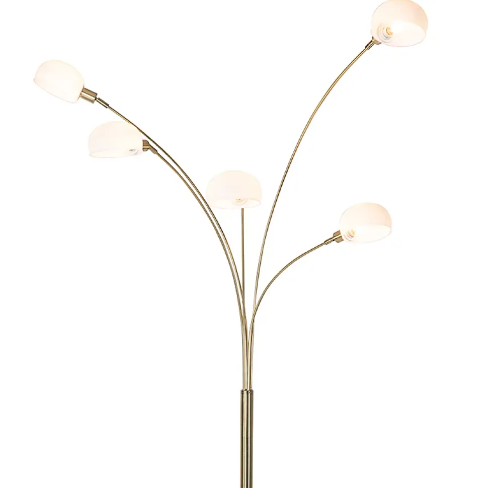 Ce lampadaire moderne à 5 lumières Sixties Marmo s’intègre parfaitement à un intérieur design. Il est fait d’acier, de verre et de marbre. Il a une finition en laiton. Les abat-jour ont une finition en verre opale, ce qui crée un effet d’éclairage d’ambiance dans la pièce. Le lampadaire a une hauteur de 198 cm, une longueur de 129 cm et une largeur de 28 cm. La base a un diamètre de 28 cm et une hauteur de 3,5 cm. Le cordon mesure 250 cm de long. Chaque abat-jour a un diamètre de 13 cm et une hauteur de 7,5 cm. Vous pouvez compléter le lampadaire avec 5 ampoules avec une douille E14 (25W maximum). Chaque « branche » peut être ajustée séparément, vous pouvez donc les placer en rangée ou les écarter. La luminosité peut être atténuée à l’aide d’un variateur externe, qui n’est toutefois pas inclus. Sixties Marmo s’intègre parfaitement au salon, au bureau ou à la chambre à coucher. Ajoutez de l’ambiance à votre intérieur avec ce lampadaire amusant !