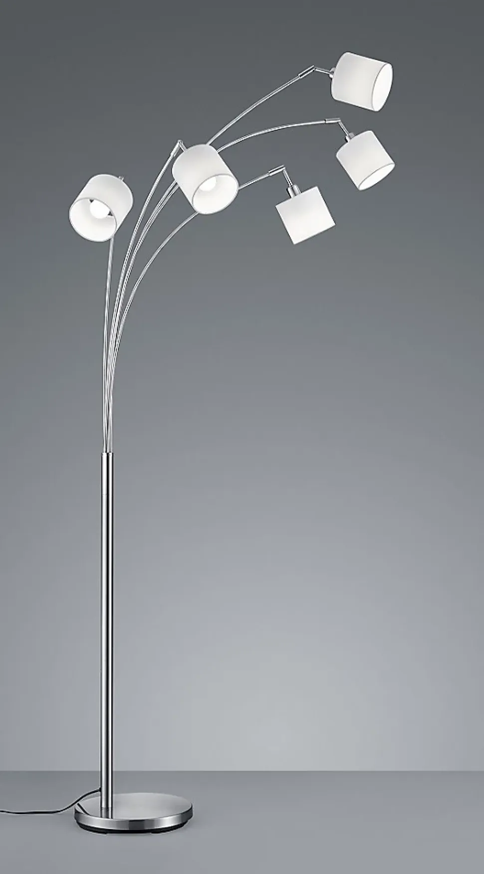 Lampadaire Arc TommyLampadaire design disponible en noir ou blanc.Matière diffuseur: TissuCorps: métalGarantie: 2 ansHauteur: 200 cmDiamètre pied: 30 cmProfondeur: 71,5 cmClasse IIIP: IP20. Eclairage: 5 x E14 (non inclus), 28W max.Interrupteur au pied.