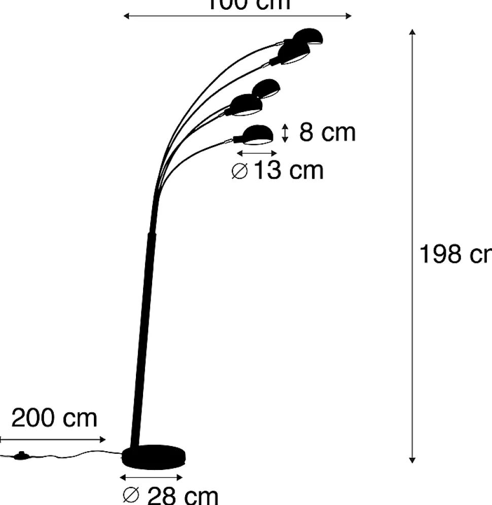 Le lampadaire Sixties ? Un véritable accroche-regard dans votre intérieur ! Sa belle finition noire lui confère un style intemporel. Sa hauteur totale est de 198 cm et sa longueur de 100 cm. Sa base mesure 28 cm de diamètre. Il est livré avec un câble d’une longueur maximale de 200 cm. Vous pouvez le compléter avec 5 jolies ampoules (25W maximum chacune) à culot E14. La luminosité peut également être atténuée à l’aide d’un variateur externe. Créez une ambiance unique dans votre maison avec le lampadaire Sixties et donnez une touche finale à n’importe quelle pièce.