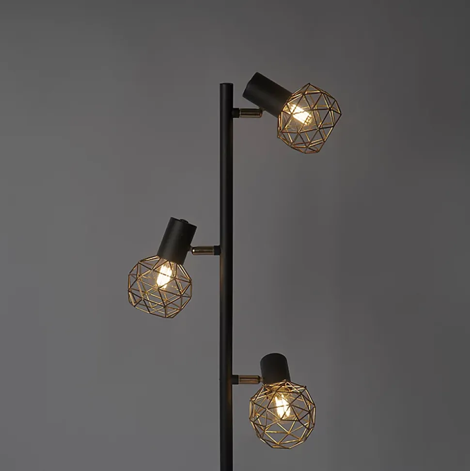 Un lampadaire saisissant dans la maison, notre Mesh ! La combinaison de la couleur dorée des spots et de la structure noire donne à ce lampadaire un effet « waouh » ! Il mesure 150 cm de haut, sa base a un diamètre de 21 cm. Il est livré avec un câble de 250 cm de long. Vous pouvez le compléter avec trois ampoules E14 de 40W maximum. Ce lampadaire n’est pas fourni avec des ampoules. Un ajout atmosphérique supplémentaire dans la chambre à coucher ou dans le salon près de la télévision. Les spots peuvent être pivotés et orientés séparément, vous pouvez donc choisir où la lumière brille. Très pratique pour lire, par exemple ! Il est dimmable avec un variateur externe (non inclus). Mesh ajoute du style à votre espace, même la lumière éteinte !
