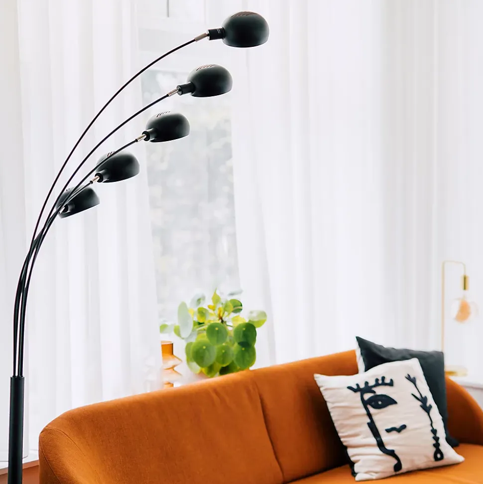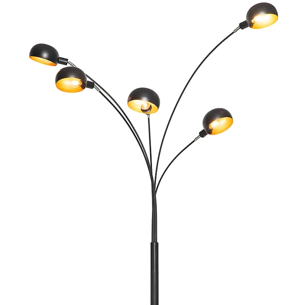 Ce lampadaire joyeux à 5 lumières Sixties Marmo s’intègre parfaitement à un intérieur design. Il est fabriqué en acier et en marbre. L’extérieur arbore une finition noire. L’intérieur des abat-jour est quant à lui doté d’une finition dorée. Cela crée un effet de lumière chaude lorsque l’éclairage est allumé. Le lampadaire mesure 198 cm de haut, 129 cm de long et 28 cm de large. Sa base a un diamètre de 28 cm et une hauteur de 3,5 cm. Le cordon mesure 250 cm de long. Chaque abat-jour a un diamètre de 13 cm et une hauteur de 7,5 cm. Vous pouvez compléter le lampadaire avec 5 ampoules à culot E14 (25W maximum). Chaque bras est réglable, vous permettant de les aligner ou de les écarter. La luminosité peut être atténuée à l’aide d’un variateur externe (non inclus). Le Sixties Marmo est parfait pour votre salon, votre bureau ou votre chambre à coucher. Ajoutez de l’ambiance à votre intérieur avec ce lampadaire amusant !