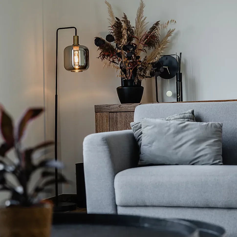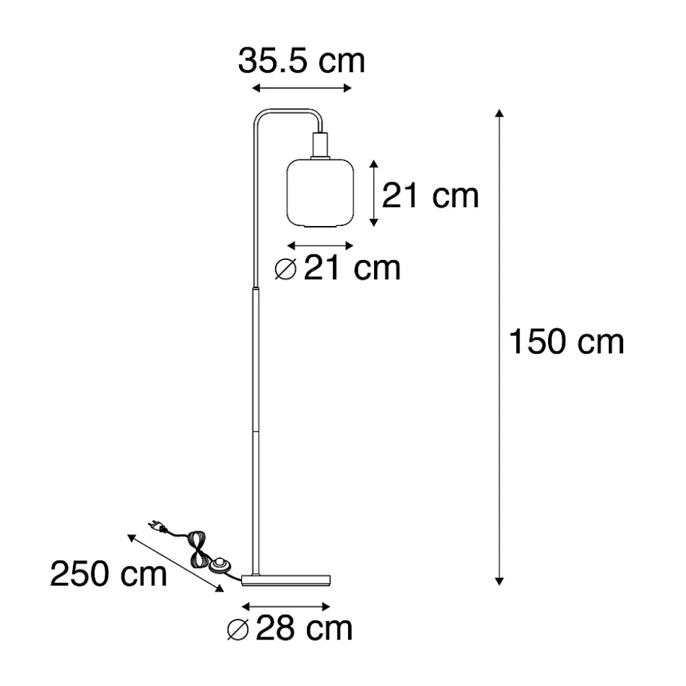 Wow, Zuzanna est un magnifique lampadaire ! L’abat-jour en verre effet fumé ajoute de la chaleur à la pièce lorsque la lumière est allumée. Fait de verre et d’acier, son design simple et sa finition or et noir lui permettent de s’adapter aux intérieurs modernes et design. Ses mesures : 150 cm de haut, 35,5 cm de long et 28 cm de large. La longueur du cordon est de 250 cm. L’abat-jour en verre a un diamètre de 21 cm et une hauteur de 21 cm. Vous pouvez compléter le lampadaire avec une ampoule E27 (40W maximum). N’oubliez pas de la commander séparément ! Et pour rendre votre intérieur encore plus agréable, vous pouvez choisir de le connecter à un variateur d’intensité, sachant néanmoins que celui-ci n’est pas inclus. Zuzanna est un magnifique lampadaire pour le salon, le bureau ou la chambre à coucher. Ajoutez du style à votre intérieur avec le lampadaire Zuzanna.