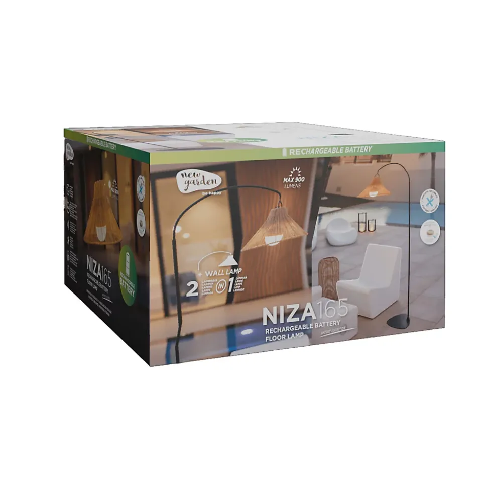 Lampadaire d’extérieur rechargeable dimmable Niza aspect fibres naturelles noir H.165 900lm Newgarden