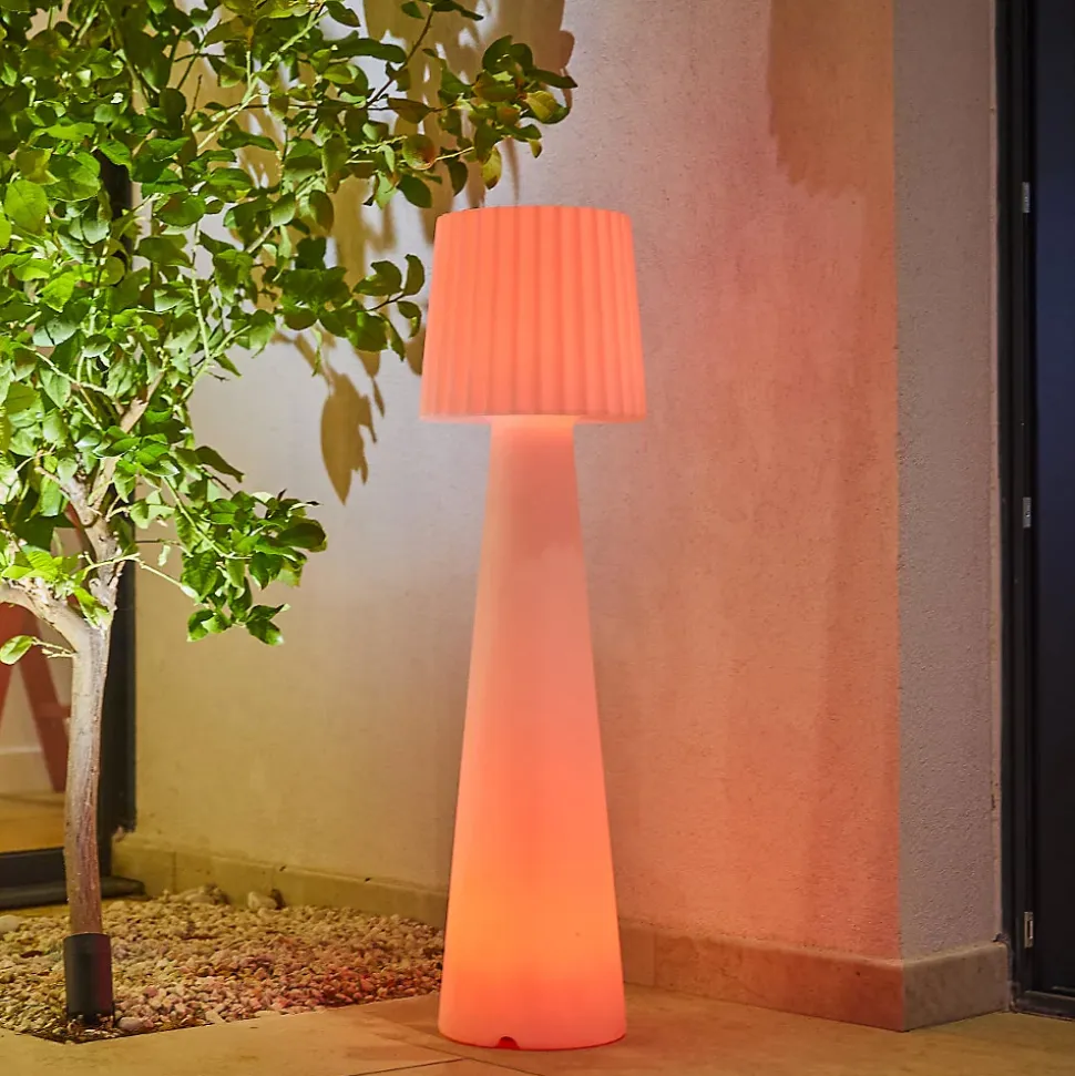 Le lampadaire LED Lady C110 est un luminaire sans fil multicolore au design moderne et épuré. Sa silhouette atypique en fait un objet de décoration idéal pour vos fêtes, salons ou terrasses. Grâce à sa batterie, il offre une autonomie allant jusqu’à 12 heures après une charge complète de 6 à 8 heures sur le transformateur fourni. Cette lampe autonome s’utilise partout, en intérieur comme en extérieur, pour apporter une touche chic à vos espaces. Haut de 110 cm et large de 26 cm, ce modèle propose un éclairage à intensité variable avec plusieurs modes réglables, délivrant un flux de plus de 100 lumens pour une ambiance sur mesure. Certifié IP44 et résistant aux UV, il est robuste face aux éclaboussures et facile à nettoyer à l’eau savonneuse. Pratique et tendance, le Lady C110 allie parfaitement esthétique originale et liberté de mouvement pour transformer radicalement l’atmosphère de votre décoration.