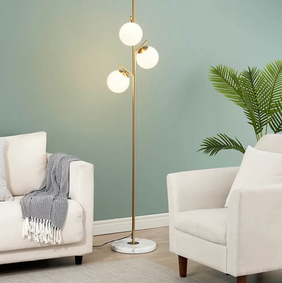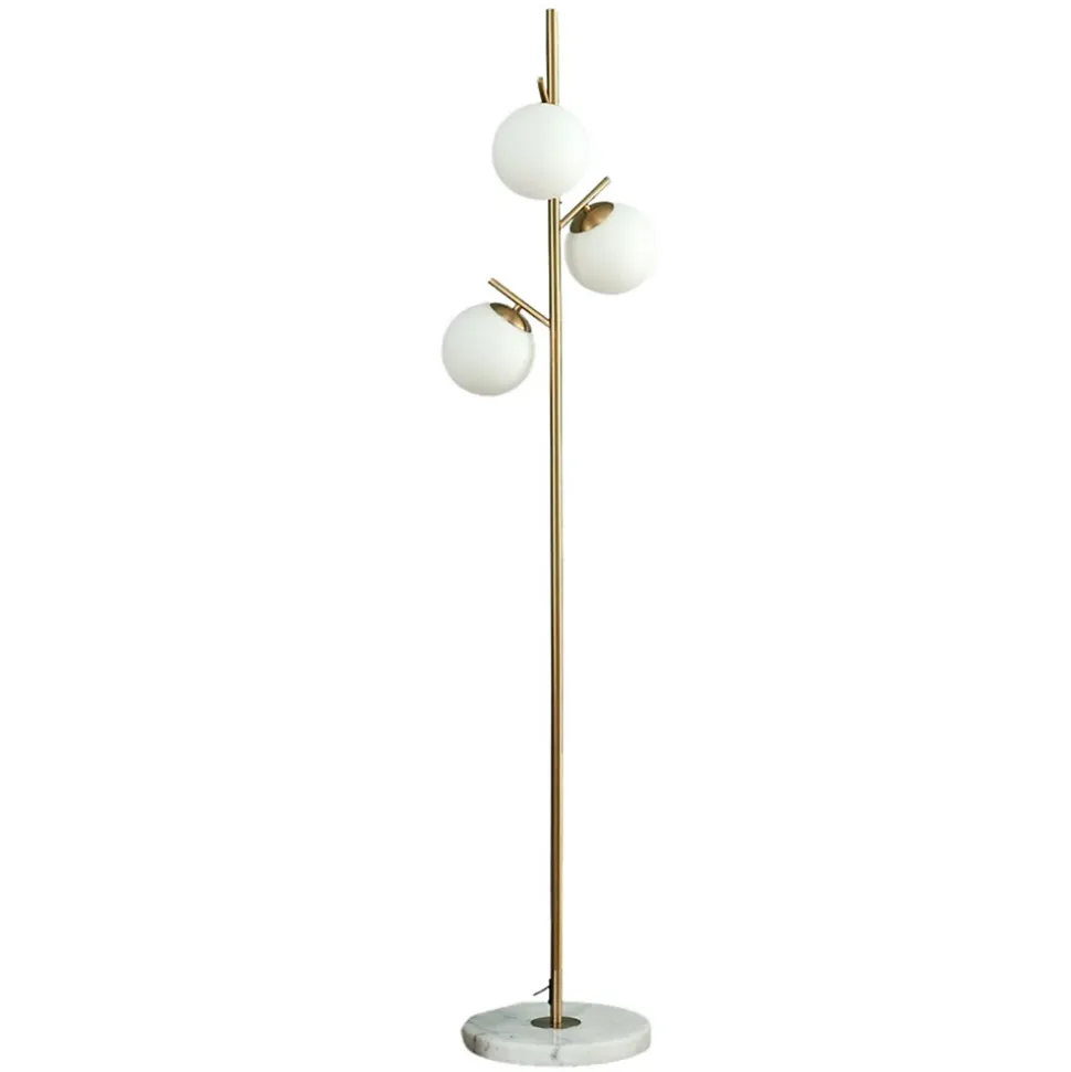Plongez dans un univers de glamour avec le lampadaire Estrela, une pièce remarquable qui conjugue luxe et élégance. Son socle en marbre blanc, son pied en métal doré et ses trois verres blancs forment une composition à la fois majestueuse et délicate, rappelant la silhouette gracile d’un arbre lumineux. Avec une hauteur de 165 cm et un socle de 30 cm de diamètre, ce luminaire ajoute une touche sophistiquée à votre intérieur tout en diffusant une lumière chaleureuse grâce à ses trois ampoules G9.) Assemblage simple requis (