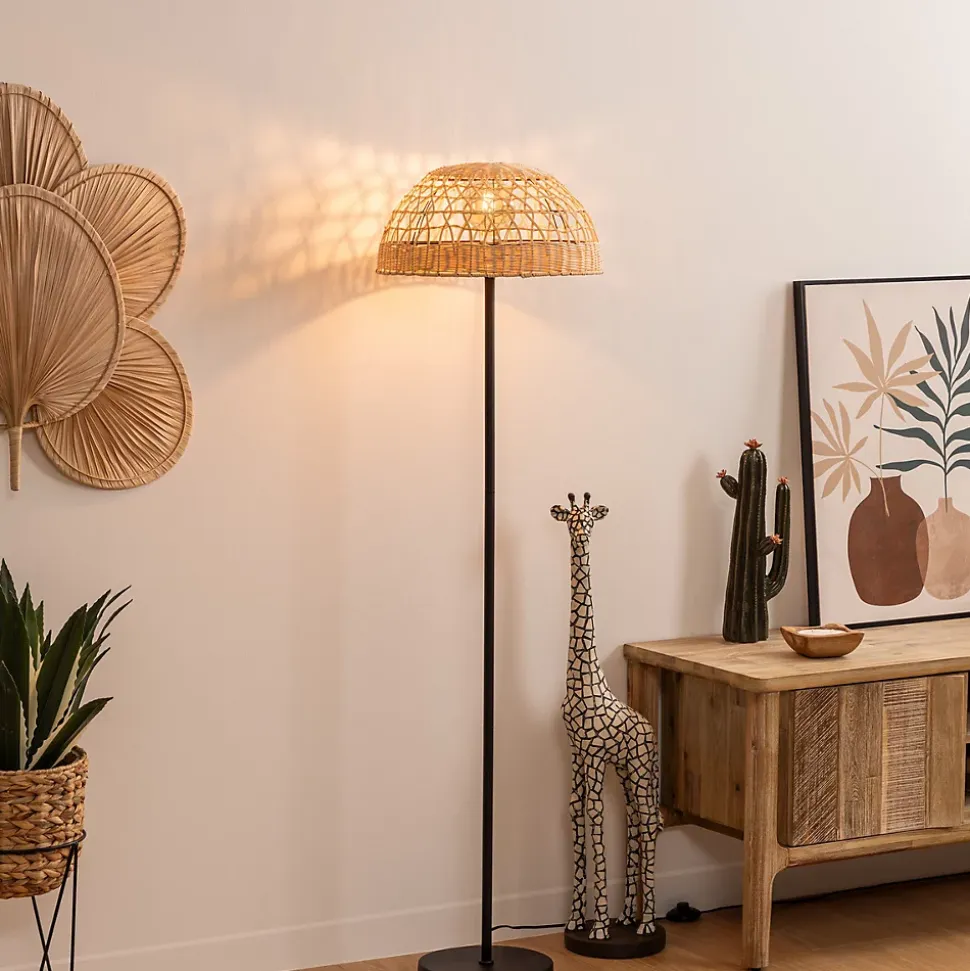 Vous recherchez un luminaire d’inspiration ethnique chic pour sublimer votre univers déco ? Le lampadaire droit « Rory » Atmosphera devrait vous plaire !Un style artisanalComposé d’un grand pied en métal teinté, le lampadaire droit « Rory » se distingue par son abat-jour en rotin tressé qui vous procurera une lumière chaleureuse, dans une pièce de vie comme dans une entrée.Une décoration de caractèreVous pourrez associer ce lampadaire à des matières naturelles comme la jute, le bois et le rotin, et le placer sur un grand tapis pour créer un ensemble harmonieux dans votre intérieur.Installez votre lampadaire droit « Rory » sur un tapis en jute végétale Atmosphera et profitez d’un coin propice à l’évasion dans votre déco !Le petit plus décoChoisissez une ampoule globe à filaments pour équiper ce lampadaire et jouer avec le tressage de l’abat-jour.