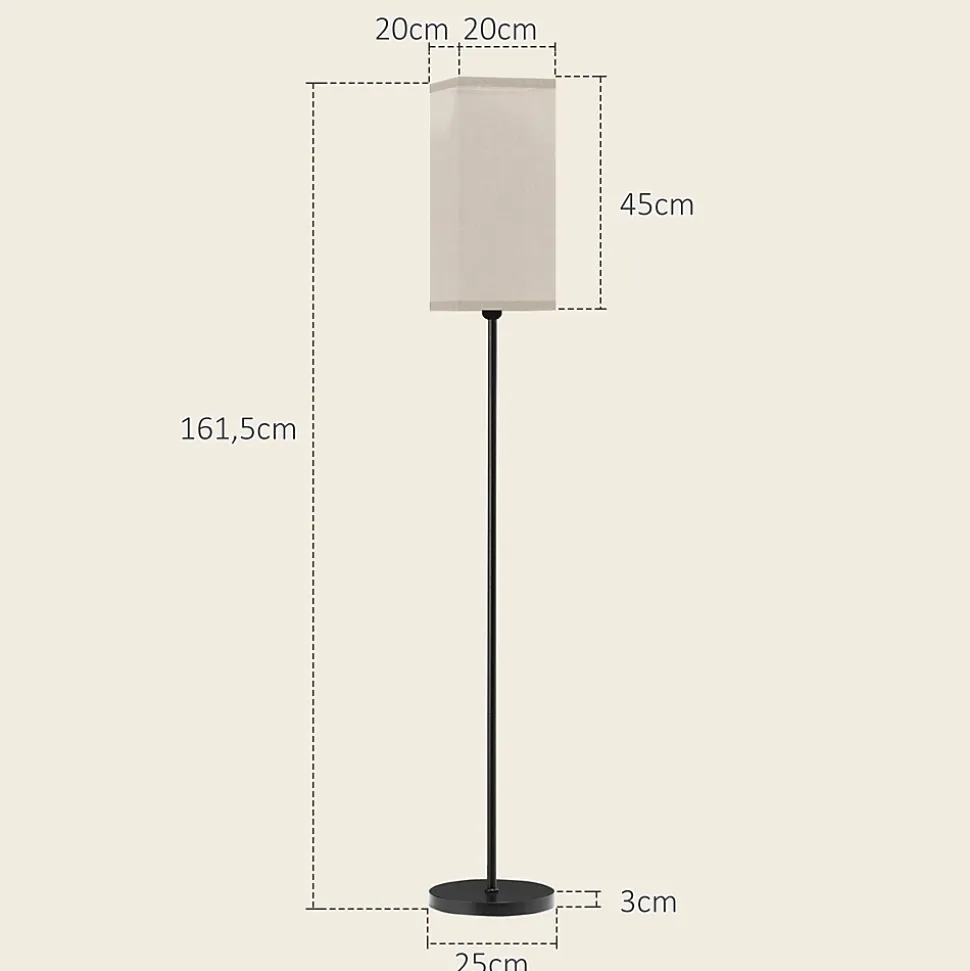 Lampe sur pied HOMCOM avec abat-jour en faux lin, idéale pour le salon ou la chambre. Cadre métallique stable, interrupteur à pied pour une utilisation facile. Parfaite comme lampe de lecture ou d’appoint.Caractéristiques :- Abat-jour moderne en lin minimaliste diffuse la lumière doucement et magnifiquement- Ampoules adaptées: ampoules LED et halogènes, etc. Base E27, maximum 40W- Lampadaire sur pied avec cadre et base métalliques stables évitent le basculement facile- Interrupteur à pied de la lampe de salon sur pied permet une opération facile à allumer/éteindre lorsque les mains sont occupées- Montage nécessaireSpécifications :- Couleurs : noir, beige- Matériaux : métal, lin (100% polyester)- Dim. totales : Ø 25 x 161,5H cm- Dim. de l’abat-jour : 20L x 20l x 45H cm- Dim. de la base : Ø 25 x 3H cm- Longueur cordon alimentation : 1,8 m- Base E27 (ampoule non incluse)- Puissance de l’ampoule : 40W- Tension : 220-240V, 50/60Hz- Réf. : B31-496V90BK