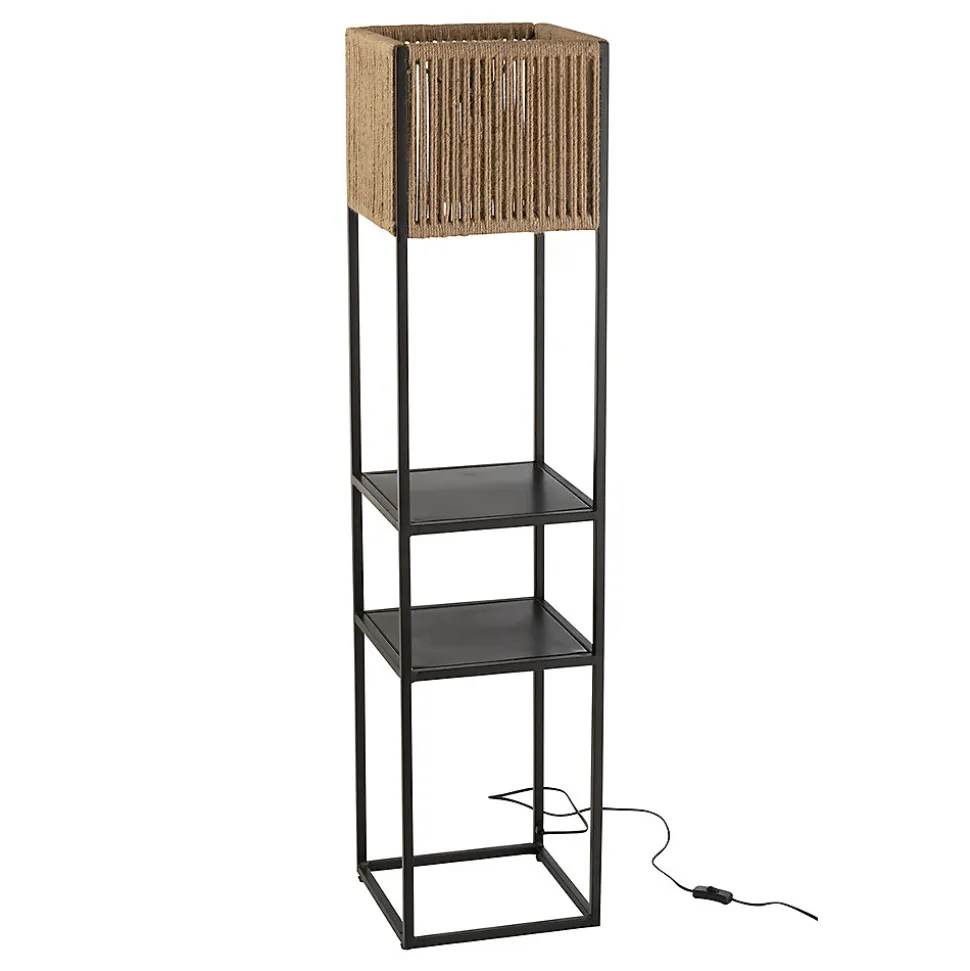 Informations Techniques :Dimensions : L. 32 x l. 31,5 x H. 133,5 cmCâble : L. 200 cmMatières : 85% Métal & 15% JuteSpécificités :Fonctionnel & TendanceLampadaire avec 2 étagèresAbat-jour en juteInterrupteur on/offAmpoule non incluseDouille : E14Puissance : 25WPoids : 8,3 kgCouleur : Naturel & Noir