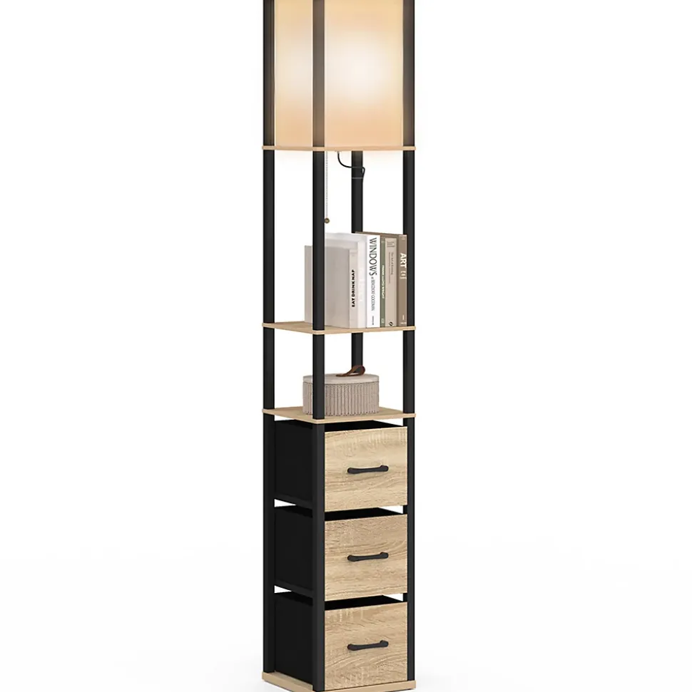 À la recherche d’un éclairage sur pied doux et moderne ? Sublimez votre pièce de vie avec ce lampadaire avec tiroirs bois et noir à prix mini ! Idéal dans un salon, un bureau ou une entrée, ce luminaire s’adaptera à toutes les pièces de votre intérieur et à tous les styles de décoration. Il trouvera parfaitement sa place à côté d’un canapé ou d’un meuble TV par exemple. Cette lampe sur pied mélange le coloris bois clair et le noir pour un look moderne et chaleureux qui rassemble tous les codes du design industriel. Sa forme carrée ainsi que ses lignées épurées sauront vous apporter un environnement doux et tamisé pour créer une ambiance zen à votre intérieur. Outre son côté design très tendance, ce lampadaire est aussi fonctionnel grâce aux 3 tiroirs disposés sous l’abat-jour. Profitez de ces espaces de rangement pour y disposer votre petite décoration ou quelques livres.L’abat-jour carré en tissu blanc offre une lumière tamisée à votre espace de vie. Son interrupteur à tirette en fait un accessoire vintage et élégant. Profitez d’une longueur de câble de 3 mètres pour vous faciliter le branchement dans votre pièce de vie et le déplacer aisément si besoin.Alors n’hésitez plus et faites-le choix du lampadaire industriel avec tiroirs en tissu pour votre intérieur, son look minimaliste et chic vous séduira à tous les coups !Description du lampadaire UTAH avec tiroirs tissuDimensions globales : Longueur 26 cm x largeur 26 cm x Hauteur 160 cmDimensions étagères : L. 26 x l. 26 x H. 39 – 19 cmDimensions intérieures tiroirs : L. 21 x l. 25 x H. 16,5 cmMatériaux : Bois de pin, Panneaux de particules, MDF, TissuColoris : BoisType de douille (ampoule non fournie) : 1 x E27Puissance : 30 WTension d’entrée : 220 V/50 HZLongueur câble électrique : 3mPoids supporté par étagère : 5 kgÀ monter soi-mêmeDécouvrez l’ensemble de nos luminaires sur notre boutique en ligne.Et si vous aimez ce style de décoration, retrouvez notre collection industrielle.