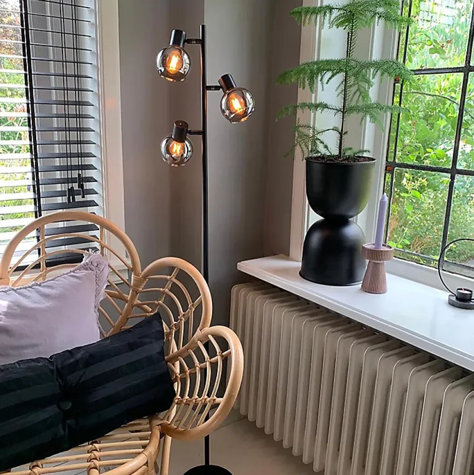 Le lampadaire Vidro trouvera parfaitement sa place dans un intérieur Art Déco. Fabriqué en verre et en acier, il est présenté dans une élégante finition noire. Doté de 3 points lumineux, ce lampadaire se démarquera dans toutes les pièces. Avec une puissance maximale de 470 lumens, il est vraiment puissant ! Le Vidro est livré avec des ampoules E14. Les ampoules fournies pour le Vidro consomment 4,9 watts et ont une durée de vie moyenne de 15 000 heures. Un plus pratique : le Vidro est intelligent et peut donc être commandé à distance via votre smartphone ou votre système domotique. L’article est livré avec un cordon et une prise. Le cordon mesure 250 cm de long. Avec le Vidro, vous aurez toujours la lumière idéale chez vous !