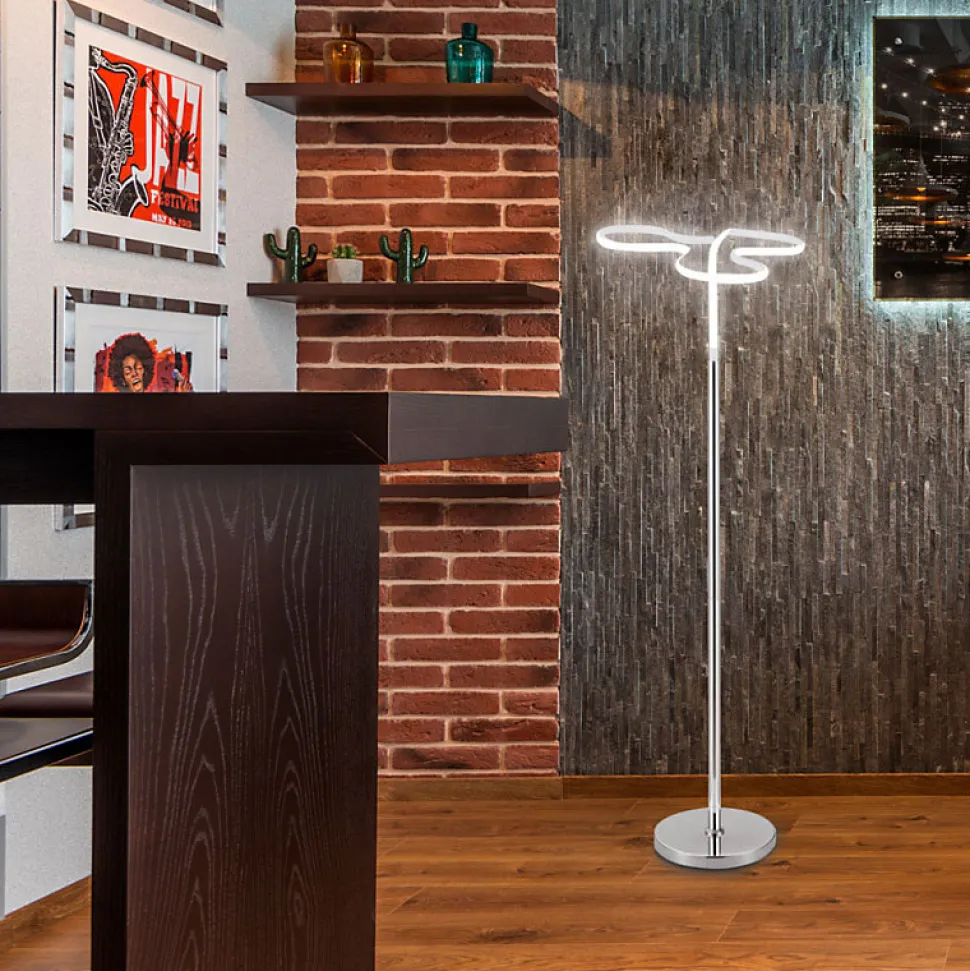 MEUBLETMOI vous présente cet élégant lampadaire CLOVER , à lumière extra blanche. Son pied et son socle sont composés de métal chromé. Sa tête est fabriquée d’une guirlande LED maintenue par un polypropylène blanc mat premium. Il illuminera parfaitement les pièces sombres et apportera une touche design à votre bureau, séjour, salon, chambre, salle à manger, entrée, couloir. Vous serez séduit(e) par sa forme trèfle à 3 feuilles originale et son éclairage homogène sans marquage, il donnera un style chic et épuré à votre intérieur. Caractéristiques principales : Lumière extra blanche uniforme Sécurisé, le plastique protége et reste froid Excellente finition et très bonne stabilité Original pour un design contemporain et chic Facilité d’entretien et bon rapport qualité prix. Caractéristiques : Dimensions principales: hauteur 166 cm – diamètre du socle 25 cm – largeur de l’éclairage 35 cm – hauteur de l’éclairage 24 cm – longueur de fil 210 cm – longueur lampe-interrupteur à pied 73 cm Ampoules LED guirlande 12V 24Wmax. Structure métallique chromée: pied et socle Feutre de protection anti-rayures collé au socle Tête en polypropylène blanc épais: goulotte opaque, protection mate transparente Sortie du fil par le socle Interrupteur filaire à pied on/off Existe en lampadaire ou lampe à poser et dans d’autres formes Produit à monter soi même Produit neuf et expédié de France. N’hésitez pas à nous contacter pour toute demande d’information, nous serons ravis de vous renseigner.