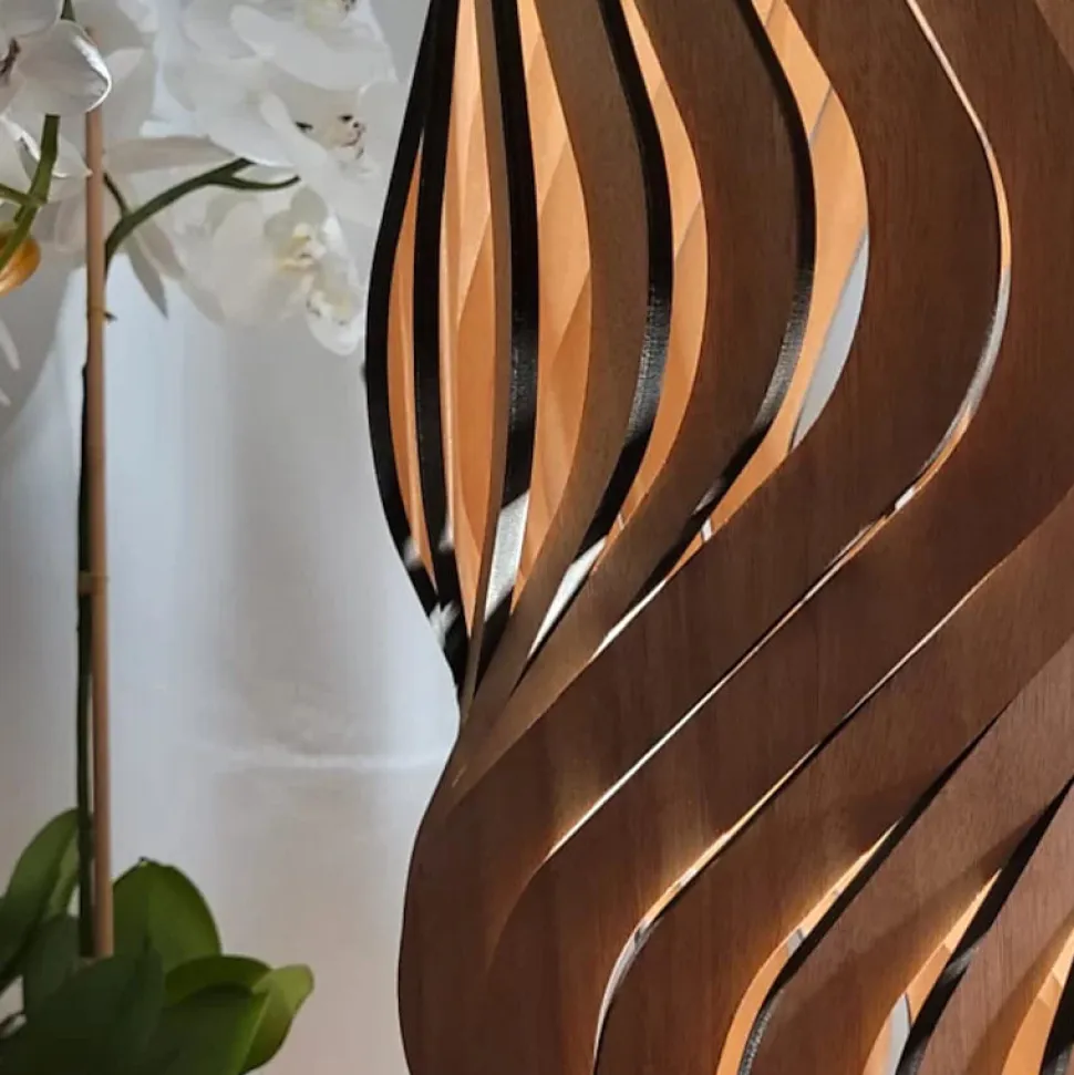 Les caractéristiques techniquesCe lampadaire Led est composé d’un abat-jour en lamelles de bouleau plaqué okoumé, d’un câble d’alimentation haut de gamme en coton, d’une douille noire livrés en kit à monter soi-même. Le produit est livré avec sa notice de montage et vous pourrez accèder à une vidéo explicative sur le site Piatoni.Dimensions de la lampe : hauteur de 180 cm, diamètre de 30 cm et le câble textile de 1,8 m.Les pièces de bois sont découpées par assistance numérique puis retravaillées à la main, poncées et recouvertes d’une huile sans COV qui les protège contre les effets du temps ou des insectes et d’une peinture noir mat sur la tranche des lames.Ce luminaire fonctionne avec une ampoule E27 de 57 watts maximum, non fournie, ce qui vous permet de choisir température de couleur et intensité lumineuse en fonction de vos goûts.Les avantages esthétiquesJean Luc Alfonsi, designer corse créateur de la marque Piatoni a imaginé pour vous cette lampe de sol en bouleau naturel plaqué okoumé et tranches noir mat.L’esthétique minimaliste de ce lampadaire aux harmonieuses formes de vagues se marie harmonieusement avec une décoration contemporaine épurée.Vous pourrez installer le lampadaire Alta dans votre pièce à vivre, votre entrée, votre chambre, dans un bar ou une salle de restaurant.Pour renforcer l’esthétique, nous vous conseillons des ampoules à filament.Chaque produit Piatoni est fabriqué en France (Toulouse) à la main.Lles luminaires Piatoni sont livrés en kit à monter soi-même dans un coffret en carton.