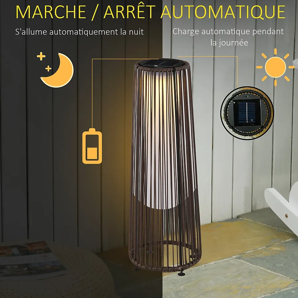 Illuminez votre espace extérieur grâce à ce superbe lampadaire style colonial en résine tressée filaire. Sur votre terrasse ou dans votre jardin, cette jolie lampe créera une ambiance cosy et chaleureuse. Elle s’intégrera parfaitement à un salon de jardin
