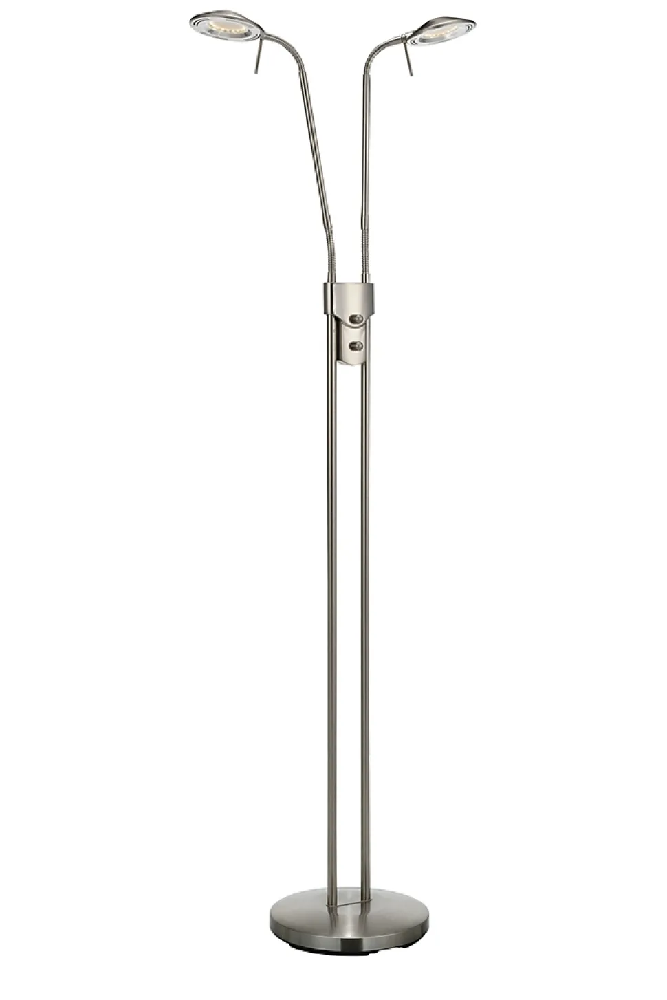 Les caractéristiques techniquesLe lampadaire Hudson de Markslöjd est conçu en fer avec une finition acier, et intègre deux sources LED fixes de 6 W chacune, diffusant une lumière blanche chaude à 850 lumens. Son double bras flexible permet une orientation précise des faisceaux lumineux, tandis que le variateur d’intensité intégré offre un confort d’éclairage optimal. Un câble transparent de 2 mètres avec une prise murale complète ce modèle pratique et moderne.Les avantages esthétiquesSon design épuré et sa teinte acier lui confèrent une allure contemporaine et sobre, idéale pour les intérieurs modernes ou industriels. Les articulations flexibles et la double source lumineuse en font un choix fonctionnel pour un coin lecture ou un salon à l’ambiance maîtrisée. Hudson est une solution élégante et efficace pour un éclairage ciblé et personnalisable.