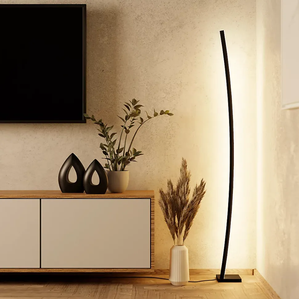 Le lampadaire LED PICACHA se compose d’une barre de LED légèrement incurvée en métal noir. Les LED intégrées sous la protection en plastique blanc diffusent une agréable lumière blanc chaud. Habilement placé dans un coin de la pièce, le lampadaire diffuse sa lumière contre le mur et crée ainsi un éclairage d’ambiance indirect. L’interrupteur à pied du câble permet de l’allumer et l’éteindre facilement. Ce lampadaire s’intègre parfaitement aux intérieurs modernes et offre un éclairage stylisé dans n’importe quelle pièce, que ce soit le salon, la chambre ou la salle à manger.