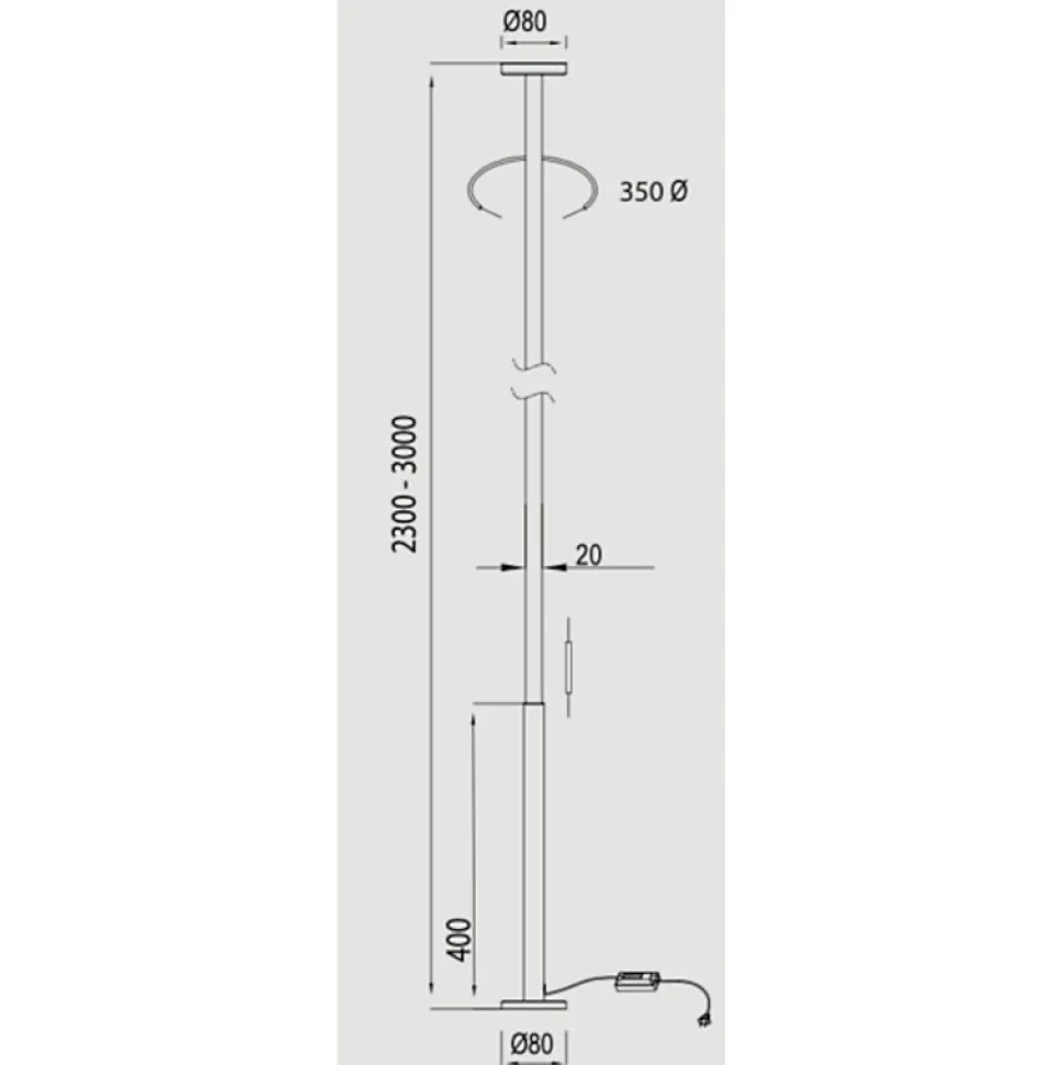 Les caractéristiques techniquesCe lampadaire Led est en aluminium laqué noir comporte 1 source de lumière à Led intégrée. Vous n’avez donc pas à prévoir l’achat d’ampoule et votre luminaire Led est immédiatement fonctionnel.Le câble d’alimentation de 2 m est équipé d’un interrupteur permettant également de régler l’intensité lumineuse.Ce luminaire diffuse une lumière blanc chaud (3000 kelvins) et procure un éclairage puissant de 2400 lumens pour seulement 40 watts de consommation à son maximum. Dimmable, il peut également diffuser une lumière plus tamisée.Attention ! luminaire spécial grande hauteur sous plafond : 2,65 m minimumLes avantages esthétiques Le lampadaire Led Vertical vous séduira par son originalité et la sobriété des ses lignes.En effet, il est composée d’ un tube extra-fin (8 cm de diamètre) réglable en hauteur de 2,65 à 3 m. Il est donc conçu pour des pièces de grande hauteur (hauteur standard : 2,40 à 2,50 m).L’originalité de ce lampadaire réside dans le fait qu’il est fixe et occupe toute la hauteur de la pièce. Vous pouvez choisir de l’installer avec la source lumineuse face au mur ou orientée sur la pièce à éclairer.L’interrupteur au pied vous permet d’allumer ou éteindre votre lampadaire mais également d’en régler l’intensité lumineuse selon l’éclairage et l’ambiance souhaités.