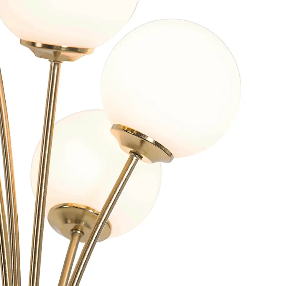 Vous recherchez un lampadaire moderne pour votre intérieur ? Alors Athènes est fait pour vous ! Avec ses 5 ampoules différentes, c’est un luminaire ludique et moderne ! Il est fait d’acier et de verre, et est présenté dans une finition dorée. Les abat-jour en verre opale garantissent que la lumière ne brille pas directement dans les yeux, mais qu’elle se diffuse progressivement dans toute la pièce. Ce lampadaire mesure 160 cm de haut, 25 cm de long et 27 cm de large. Sa base a un diamètre de 25 cm et une hauteur de 2,5 cm. Vous pouvez compléter Athènes avec 5 ampoules à culot G9 d’une puissance maximale de 28 watts. N’oubliez pas de les commander séparément. Ce lampadaire joyeux trouvera parfaitement sa place dans votre salon, votre bureau ou votre chambre à coucher !