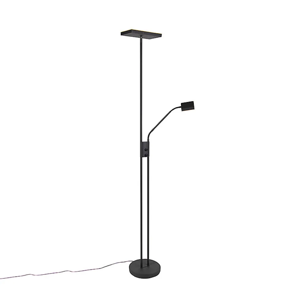Lampadaire très fonctionnel avec bras de lecture. Ce Jazzy a une hauteur de 184,5 cm. La base a un diamètre de 25 cm. Il est livré avec un câble de 210 cm de long. Les deux lampes peuvent être variées séparément. Le bras de lecture est très réglable grâce à deux parties flexibles. Le lampadaire a un éclairage vers le haut comprenant une LED (intégrée au luminaire). Cette LED a un rendement lumineux de 2700 Kelvin et 1700 lumens. Le bras de lecture a le même rendement lumineux. Ces points lumineux peuvent être variées séparément. Le Jazzy a une longue durée de vie avec une moyenne de 30 000 heures de combustion. Un lampadaire super fonctionnel pour la lecture et grâce à la fonction de variation de la lampe, il devient un créateur d’ambiance dans votre intérieur ! La couleur noire le rend très intemporel.