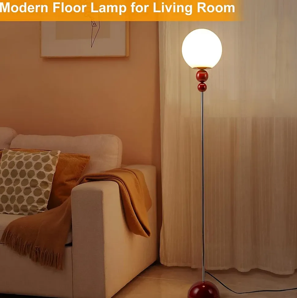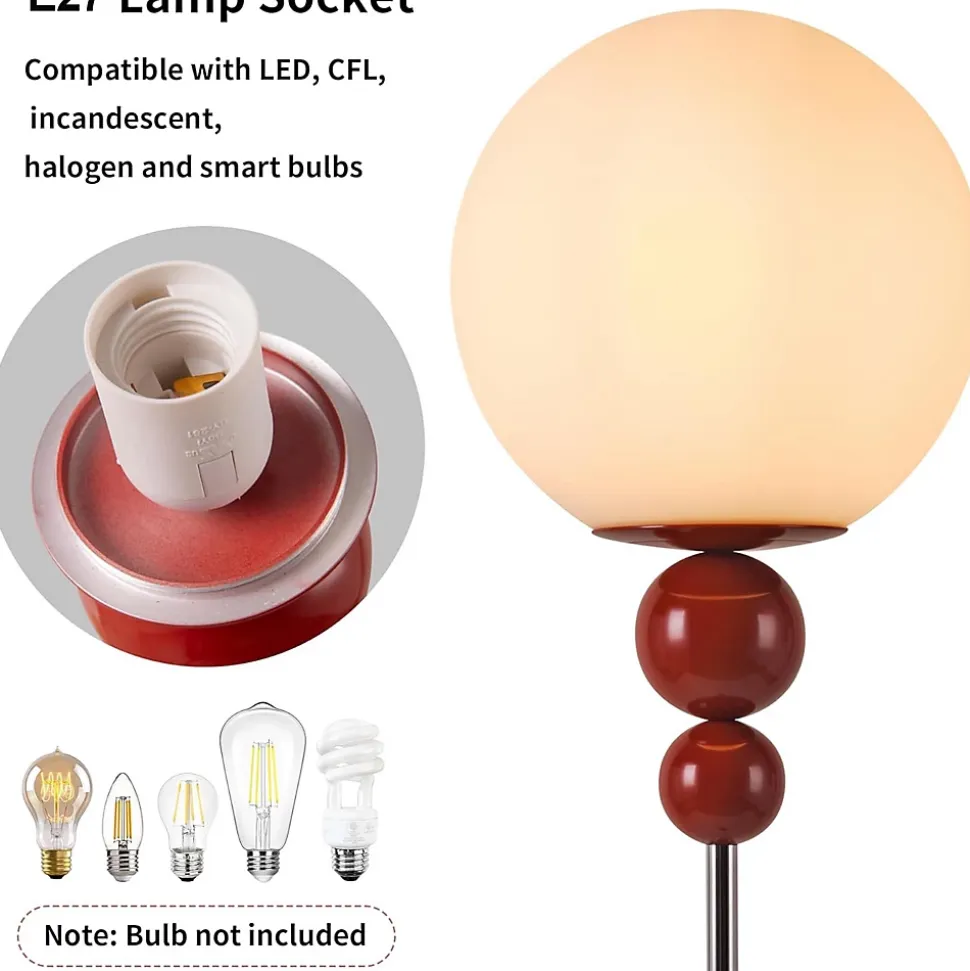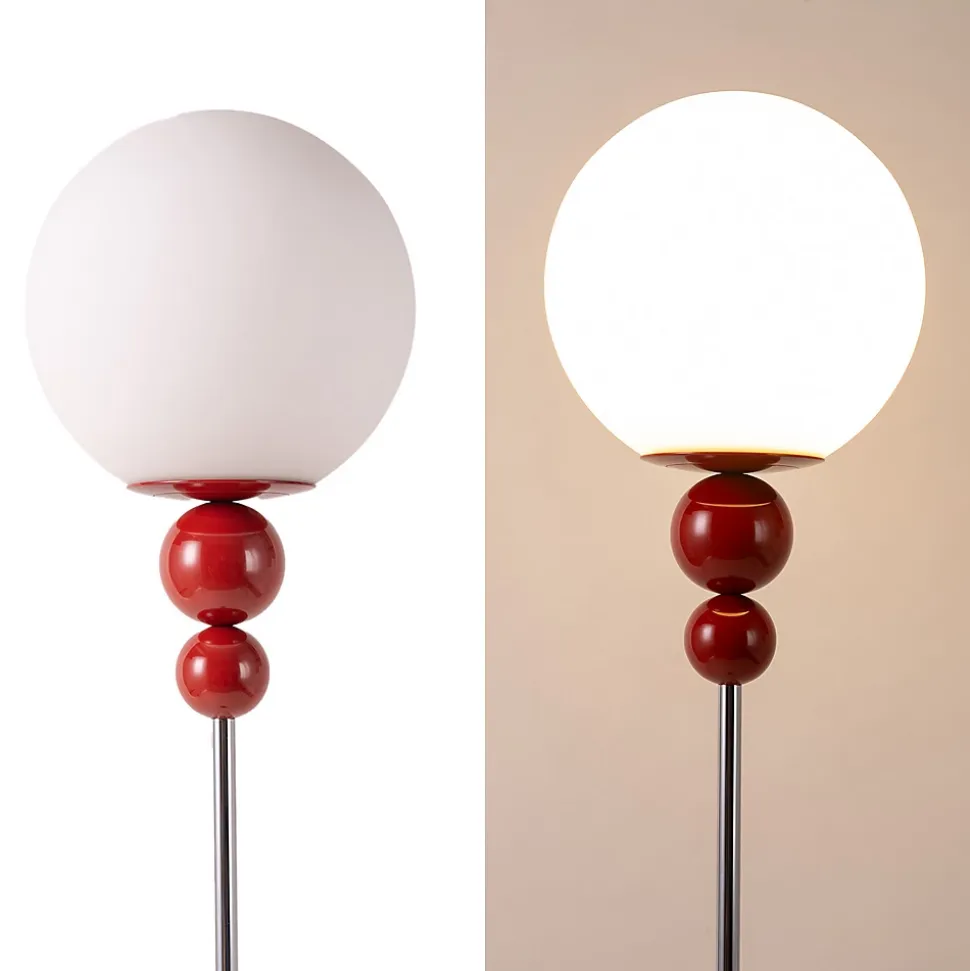 La lampe sur pied « LOKE » combine un design moderne et sophistiqué avec une touche artistique inspirée du style mid-century. Sa structure métallique chromée soutient un élégant abat-jour sphérique en verre opale blanc, offrant une lumière douce et enveloppante, idéale pour créer des ambiances chaleureuses et contemporaines.Design Décoratif et Élégant :Avec sa tige métallique élancée et sa base semi-sphérique, la lampe LOKE se distingue par ses deux sphères métalliques décoratives de tailles différentes situées dans la partie inférieure, apportant équilibre et dynamisme visuel. Elle est parfaite pour ceux qui recherchent une pièce décorative avec du caractère et de la présence.Polyvalence et Style :Grâce à son corps fin et sa base compacte, cette lampe peut être placée facilement à côté d’un canapé, d’un bureau ou d’une table de chevet sans occuper trop d’espace. Idéale pour les salons, chambres, bureaux ou espaces de travail, elle offre à la fois une lumière ambiante et fonctionnelle.Compatibilité Intelligente :Compatible avec les dispositifs intelligents et les ampoules LED de couleur ou à lumière chaude. Vous pouvez l’adapter à votre style et contrôler son allumage via votre appareil connecté ou grâce à l’interrupteur au pied intégré au câble.Couleurs Disponibles :La lampe LOKE est disponible dans une sélection soignée de finitions :Noir, Bordeaux, Vert, Doré, Orange et Beige crème.Caractéristiques Techniques :Hauteur totale : 160 cmDiamètre de la sphère : 24 cmDiamètre de la base : 21 cm, hauteur de la base : 10 cmLongueur du câble avec interrupteur au pied : 250 cmMatériau : métal peint et verre opale blancDouille : E27, compatible avec ampoules LED, halogènes ou incandescentes (max. 40 W)Ampoule non incluseStyle et Lumière pour Tout Espace :La lampe sur pied LOKE est bien plus qu’une source lumineuse : c’est une pièce de design qui apporte élégance moderne, équilibre visuel et une lumière enveloppante à n’importe quelle pièce.