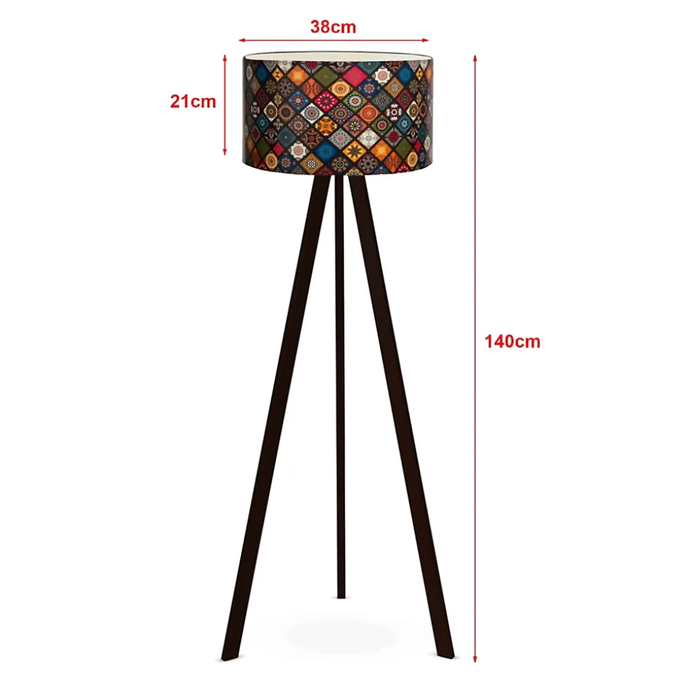 LampadaireCette lampe sur pied stylée et moderne sera l’ornement de la pièce en s’adaptant à la décoration de la maison.Description :- luminaire de design original- conçu pour un éclairage intérieur- doté d’une douilleCaractéristiques :- douille : 1 x E27, max. 20W (sans ampoule)- alimentation : 230V, 50Hz- type d’interrupteur : sur câbleMatière :- structure : MDF- abat-jour : tissu (100 % polyester)Dimensions :- hauteur totale : 140 cm- abat-jour (hauteur x diamètre) : 21 x 38 cm- longueur du câble : 200 cmCouleur :- structure : noir- abat-jour : multicoloreContenu de la livraison :1 x lampadaire [l’ampoule ne fait pas partie de l’offre]Produit de la marque :[lux.pro]