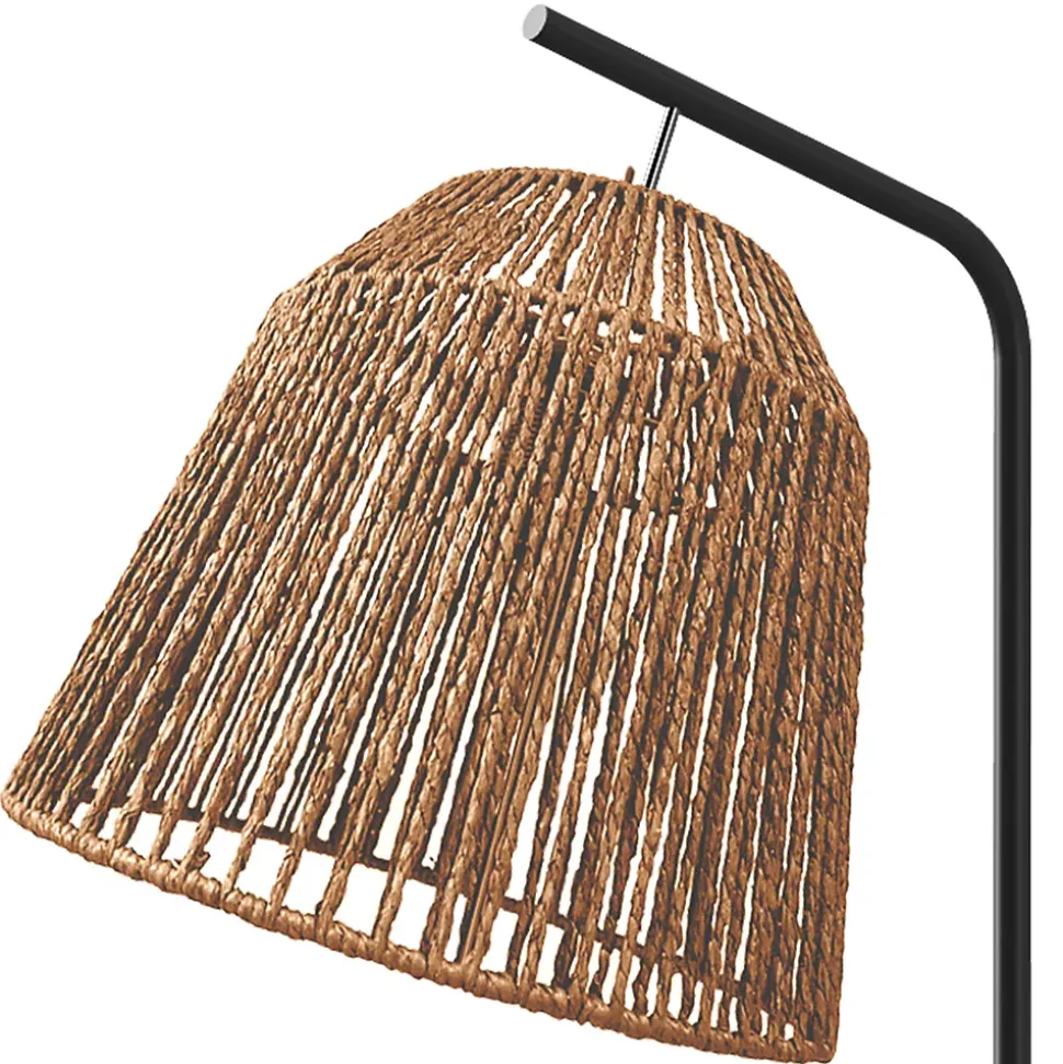 - Le lampadaire Ninetta se compose pied en métal noir et d’un abat-jour en fibre naturelle en forme de cloche.