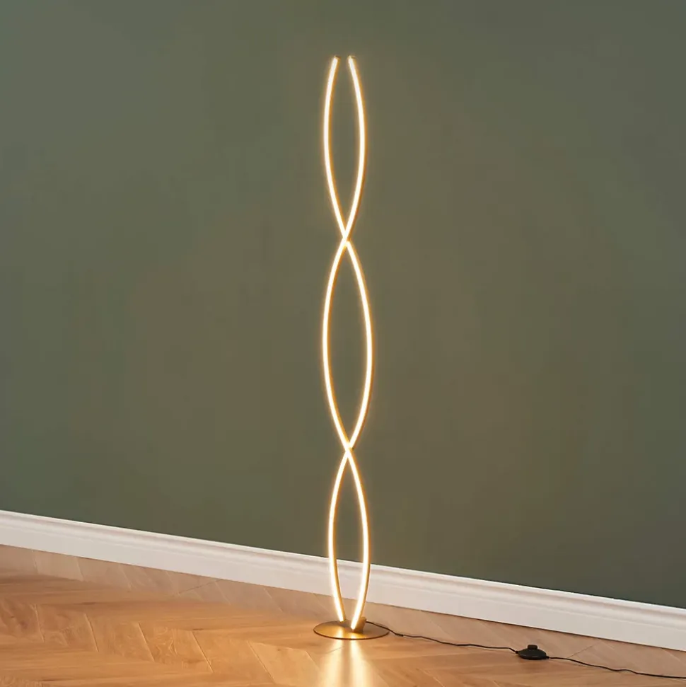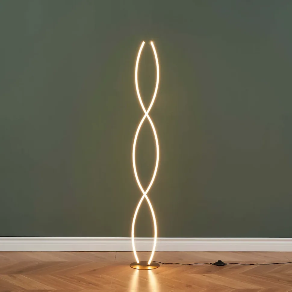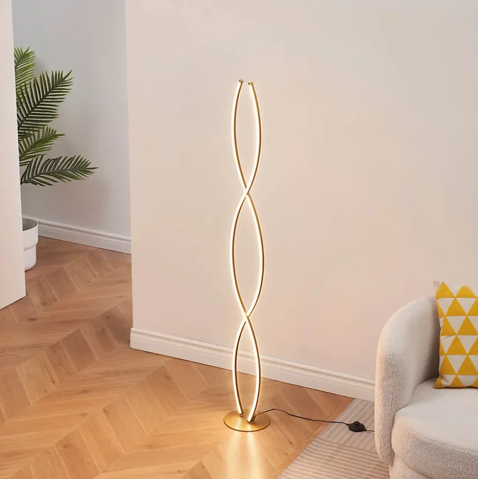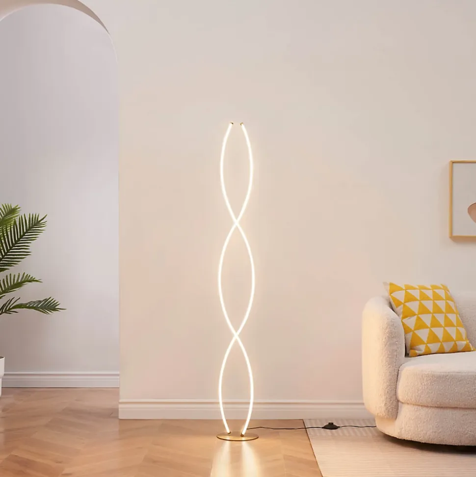 Orionis est un lampadaire moderne au design captivant, avec sa forme en spirale dorée qui ne manquera pas d’attirer l’attention. Conçu en aluminium et silicone, il combine matériaux de qualité et esthétique épurée. Avec une hauteur de 150 cm et un diamètre de 20 cm, Orionis apporte une touche élégante à votre intérieur. Doté d’une LED intégrée de 36W, il émet une lumière douce de 1600 lumens et dispose d’un variateur intégré, permettant d’adapter l’intensité lumineuse à vos besoins. Idéal pour un éclairage modulable et moderne.) Assemblage simple requis (