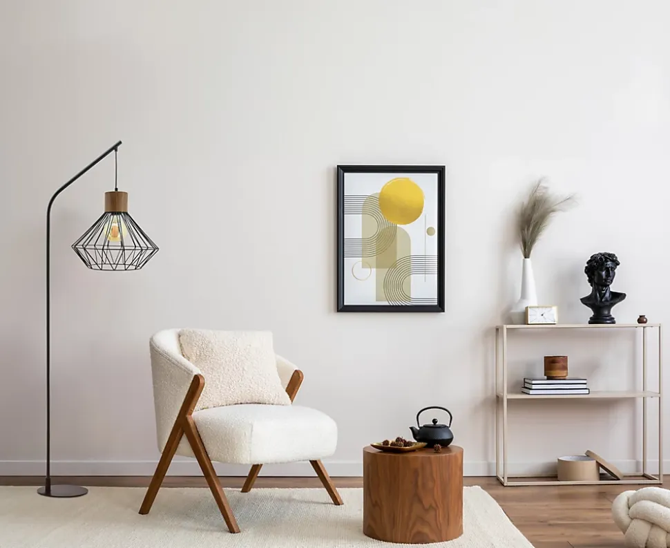 Avec son abat-jour en forme de diamant, ce luminaire ajoute une touche de sophistication à n’importe quel espace. Le design épuré et moderne de ce lampadaire se distingue par sa structure en métal noir, apportant une esthétique industrielle chic qui s’intègre harmonieusement dans divers styles de décoration.